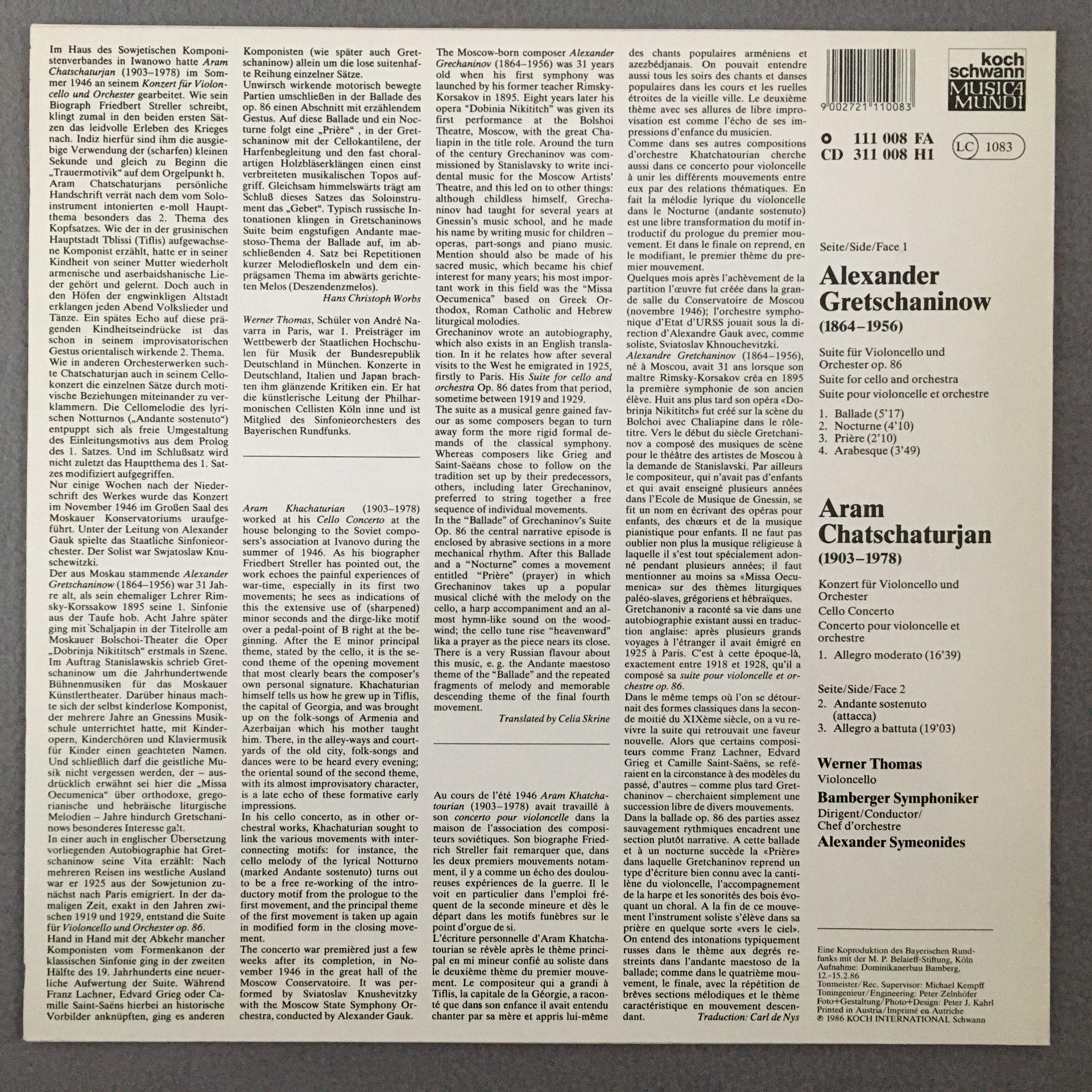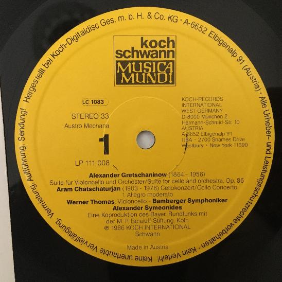 L875 Khachaturian Cello Concerto Thomas Symeonides Schwann 111 008 FA Stereo