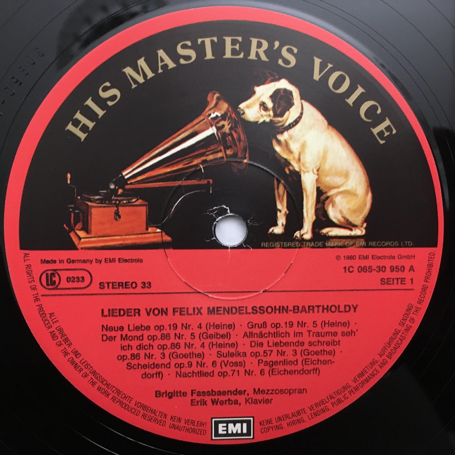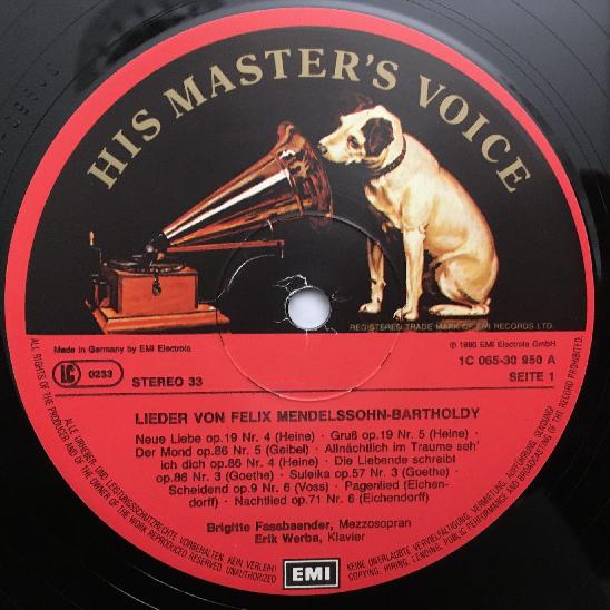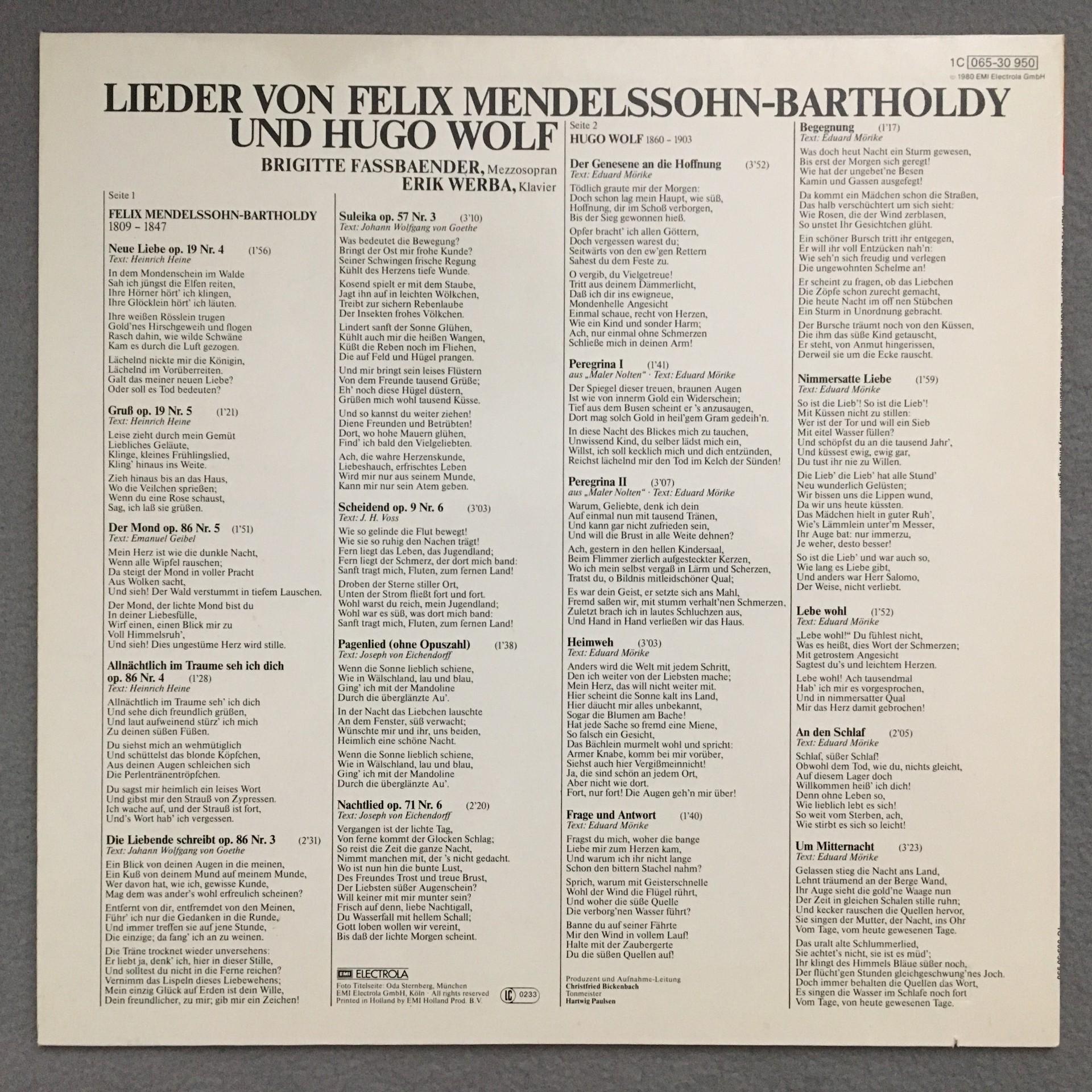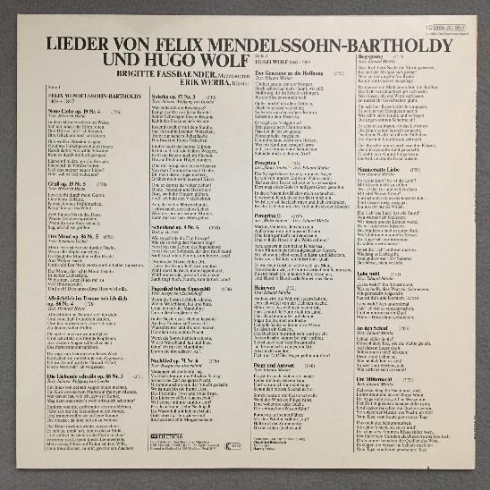 L889 Fassbaender Songs Mendelssohn Wolf Werba EMI 1C 065-30 950 Stereo