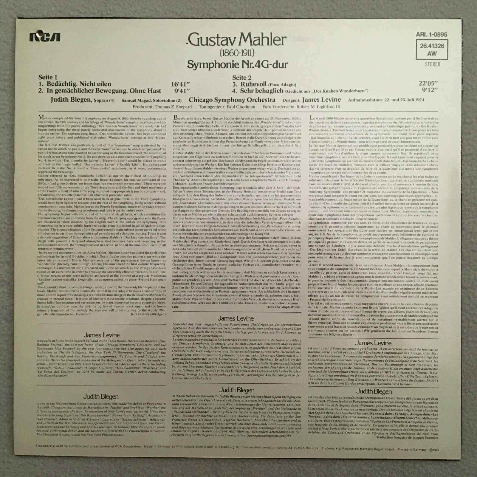 S978 Mahler Symphony No.4 Blegen Levine RCA ARL 1-0895 Stereo