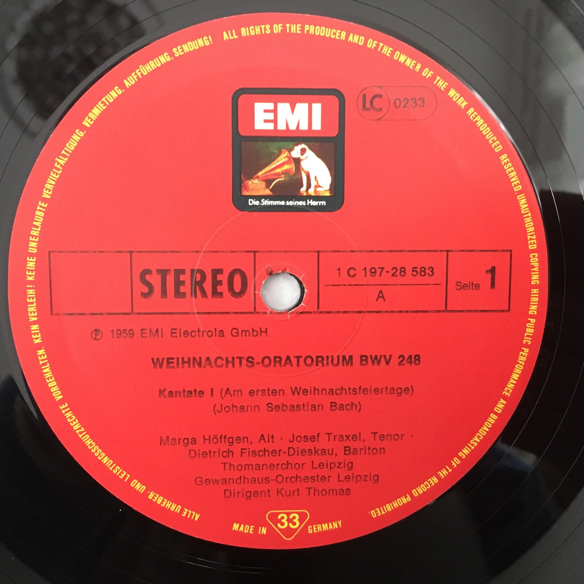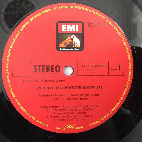 D123 Bach Christmas Oratorio Fischer-Dieskau Thomas 3LP EMI 1C 197-28 583/85 St