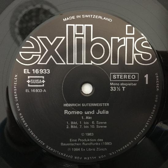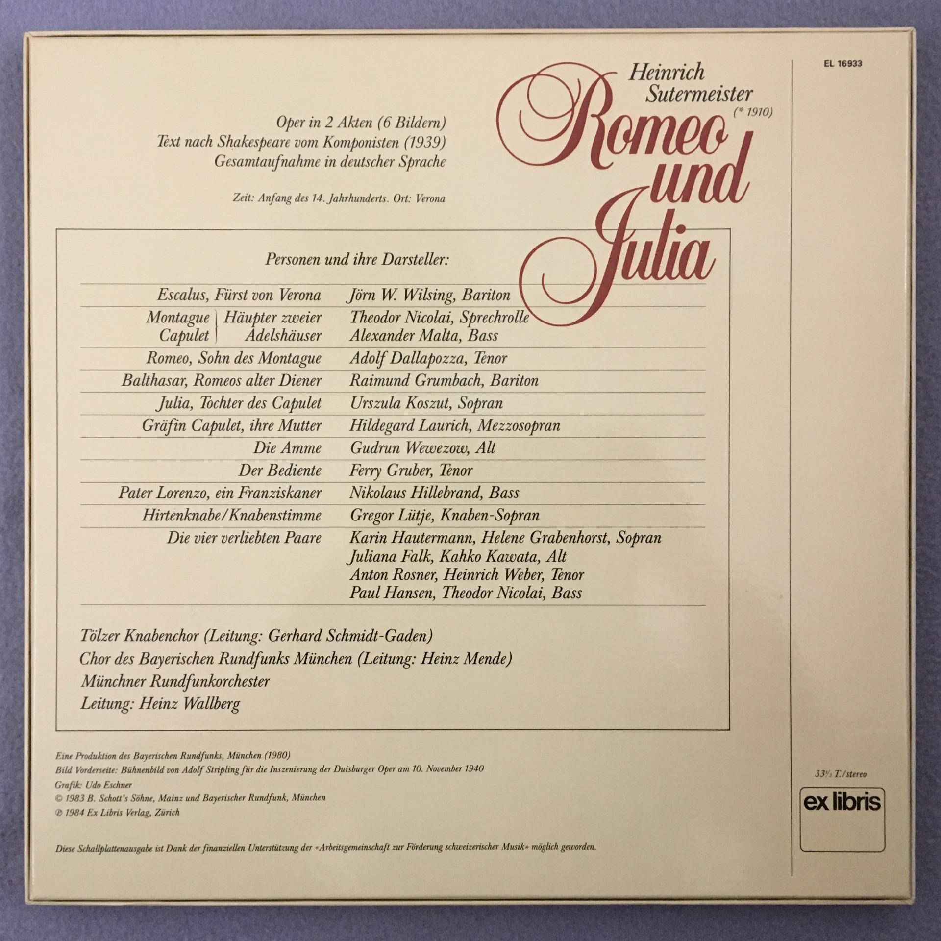 D132 Sutermeister Romeo & Juliet Wilsing Wallberg 2LP Ex Libris EL 16933 Stereo