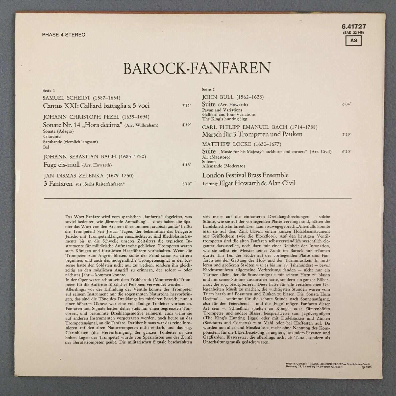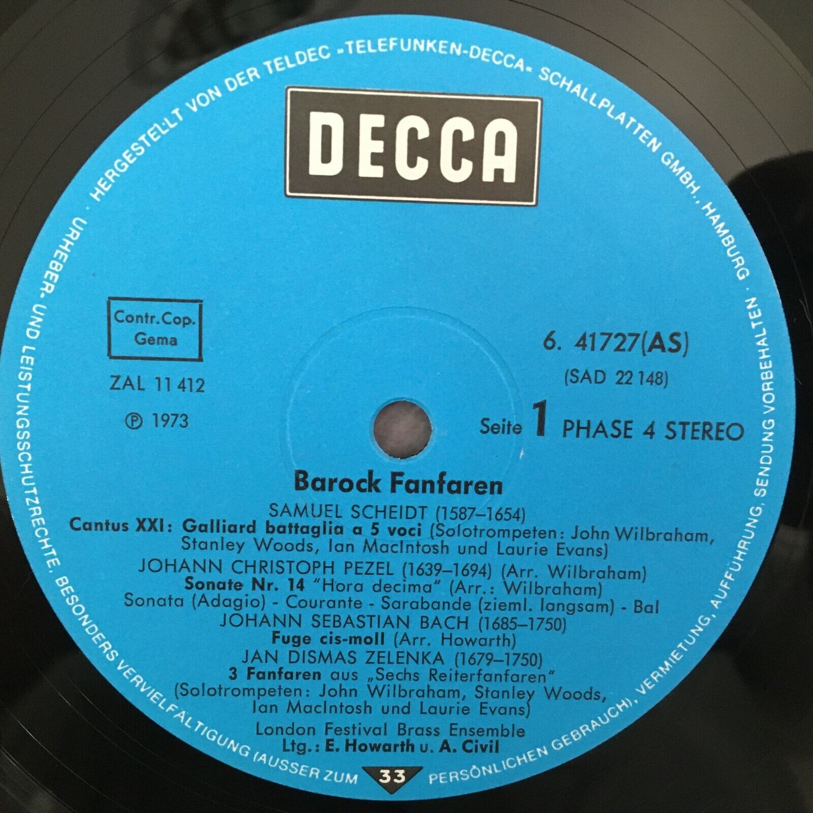 Z549 Baroque Fanfare Scheidt Pezel Bach Howarth Civil DECCA 6.41727 AS Stereo