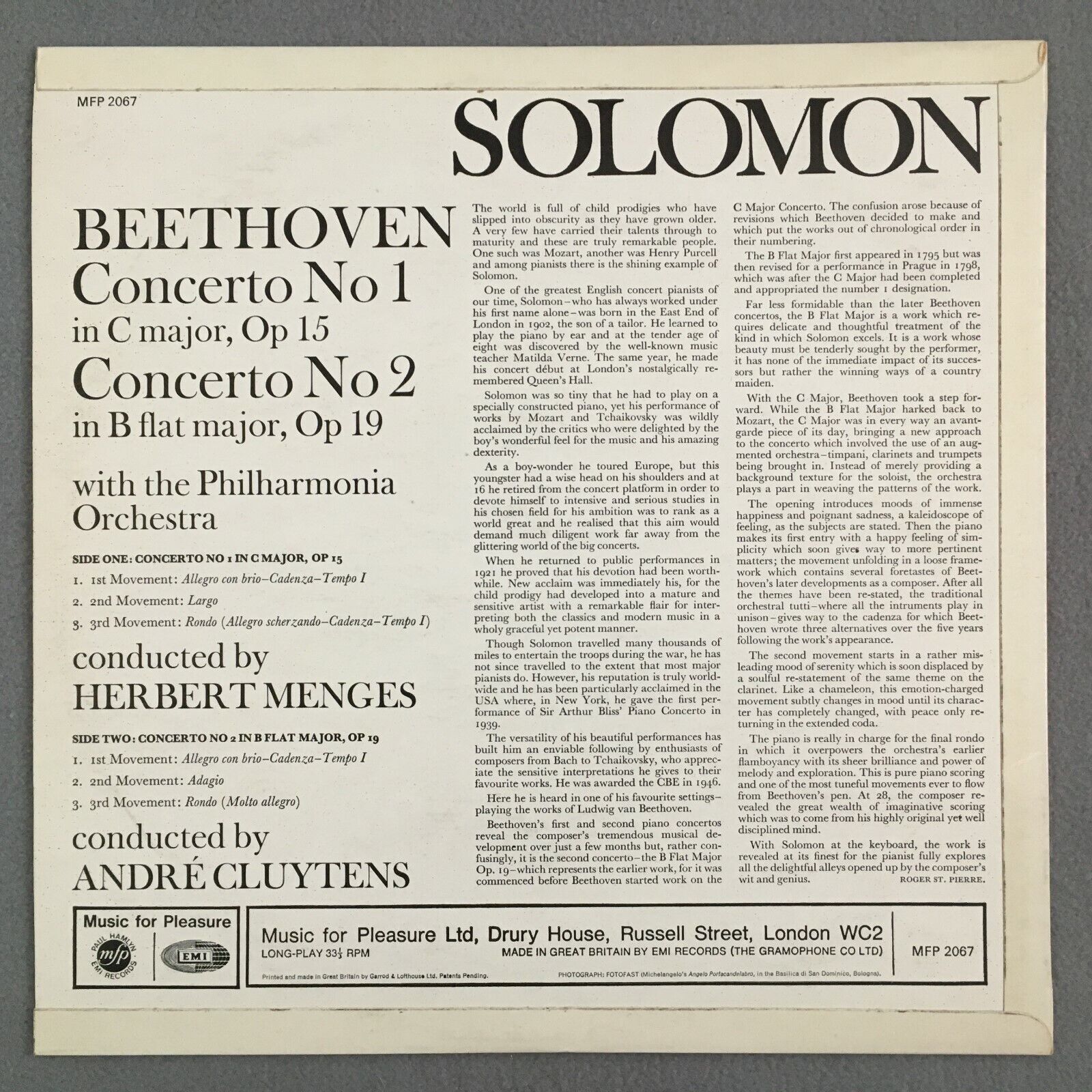Z529 Beethoven Piano Concertos No.1 & No.2 Solomon Menges Cluytens MFP 2067