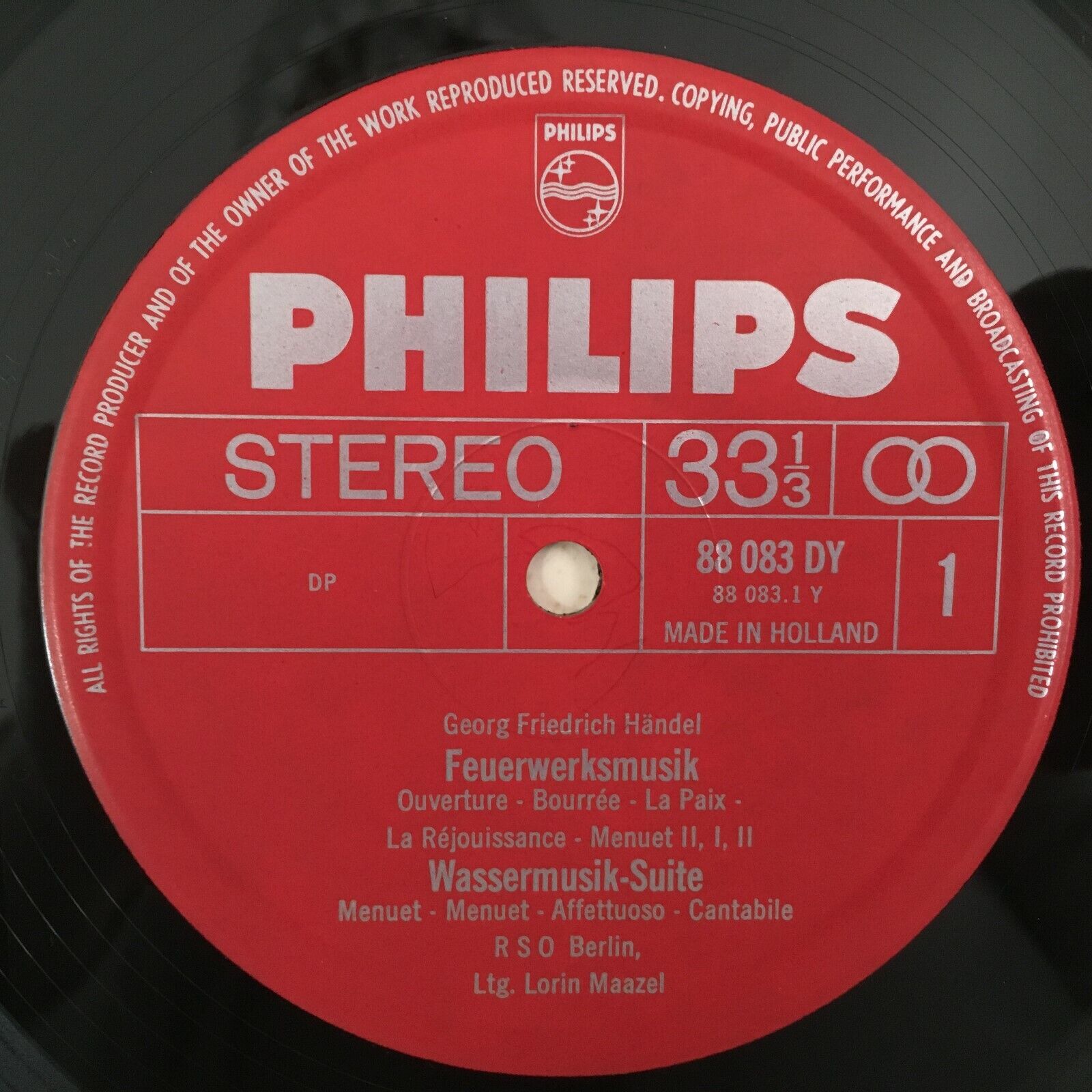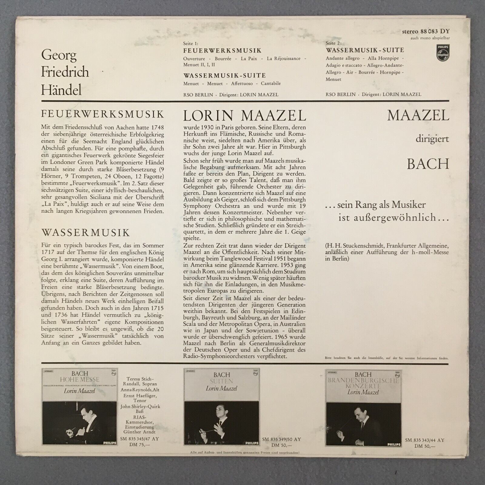 Z562 Handel Water Music Fireworks Music Maazel Philips 88 083 DY Stereo