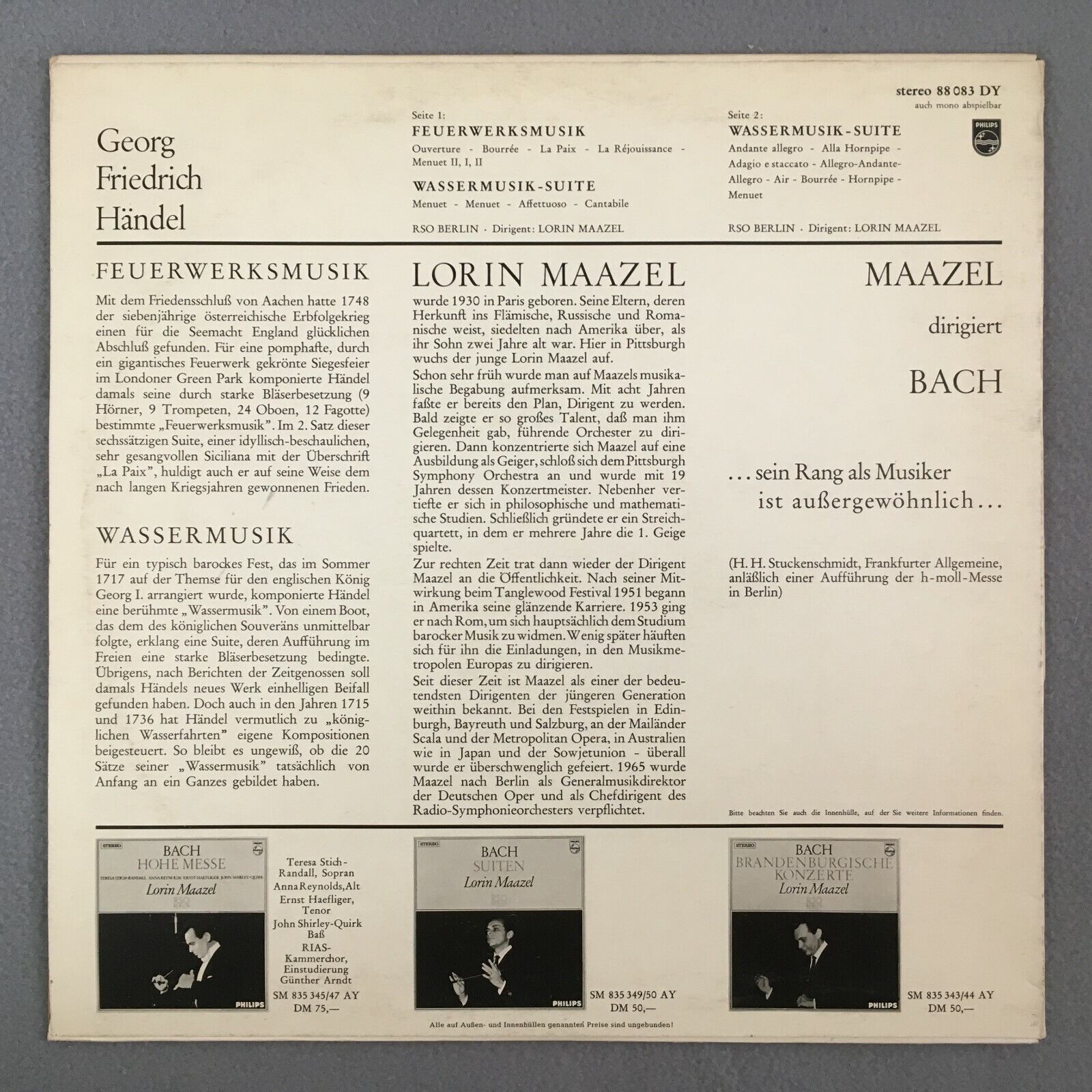 Z563 Handel Water Music Fireworks Music Maazel Philips 88 083 DY Stereo