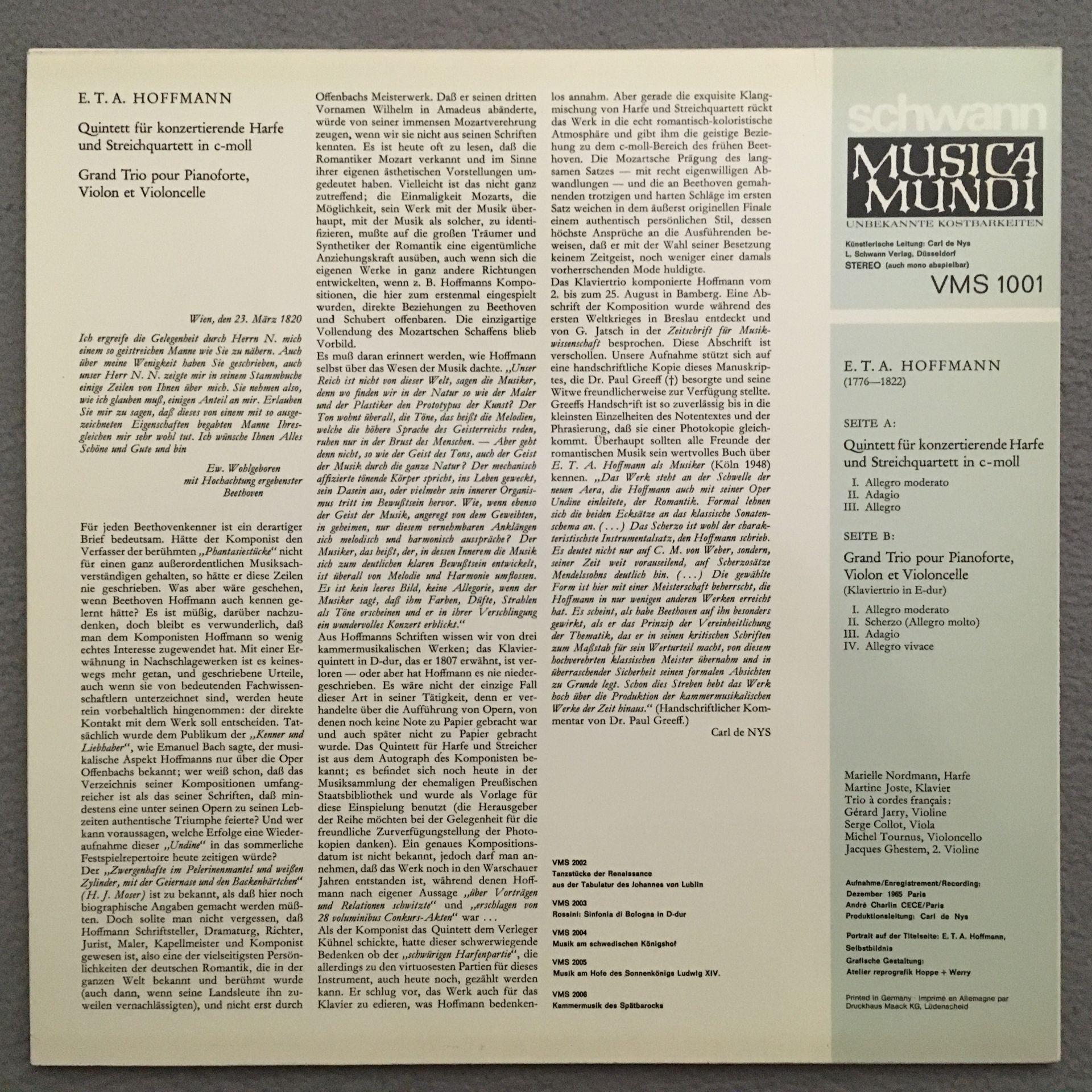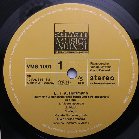 J899 Hoffmann Harp Quintet Nordmann Piano Trio Joste Schwann VMS 1001 Stereo
