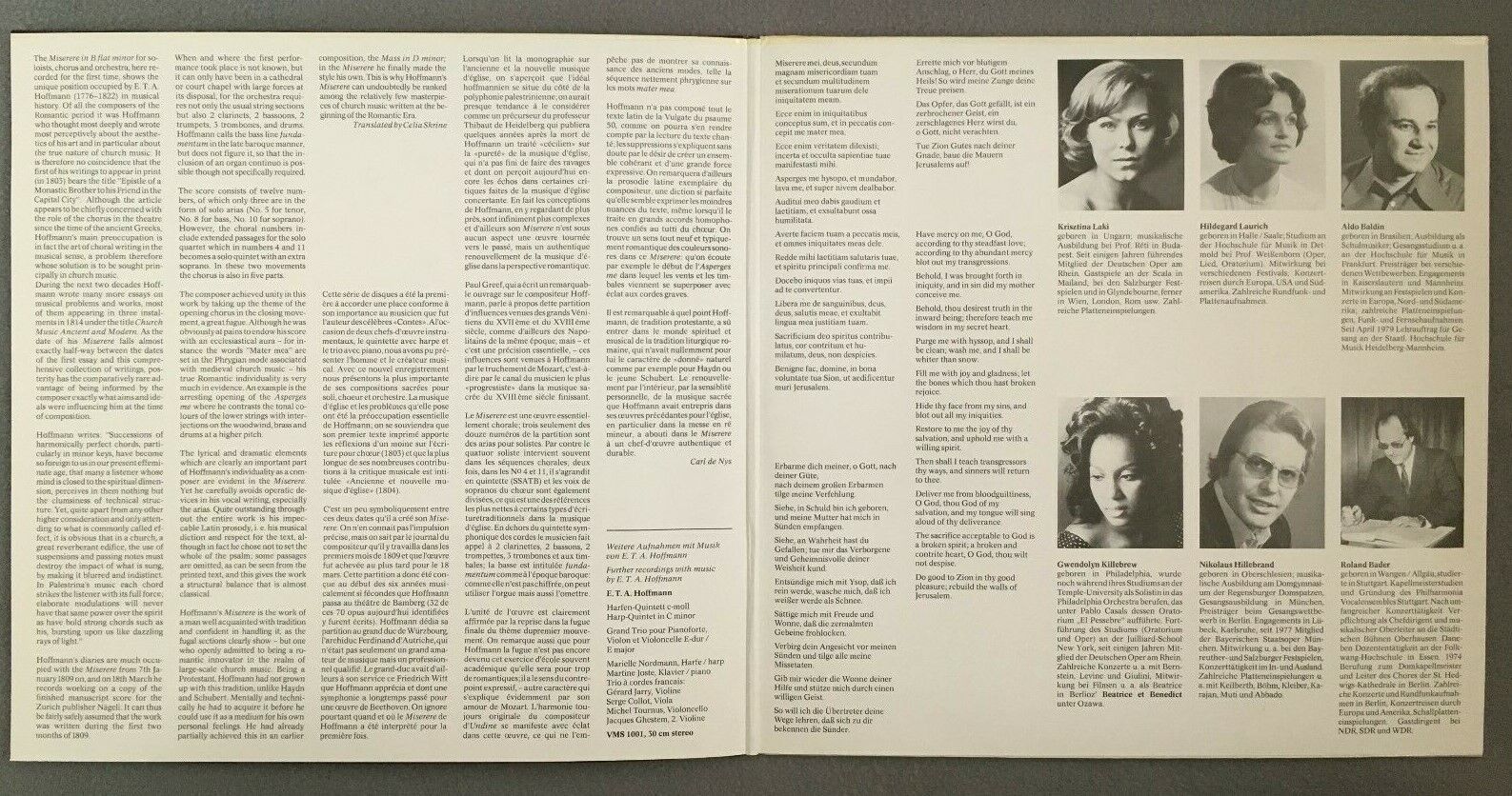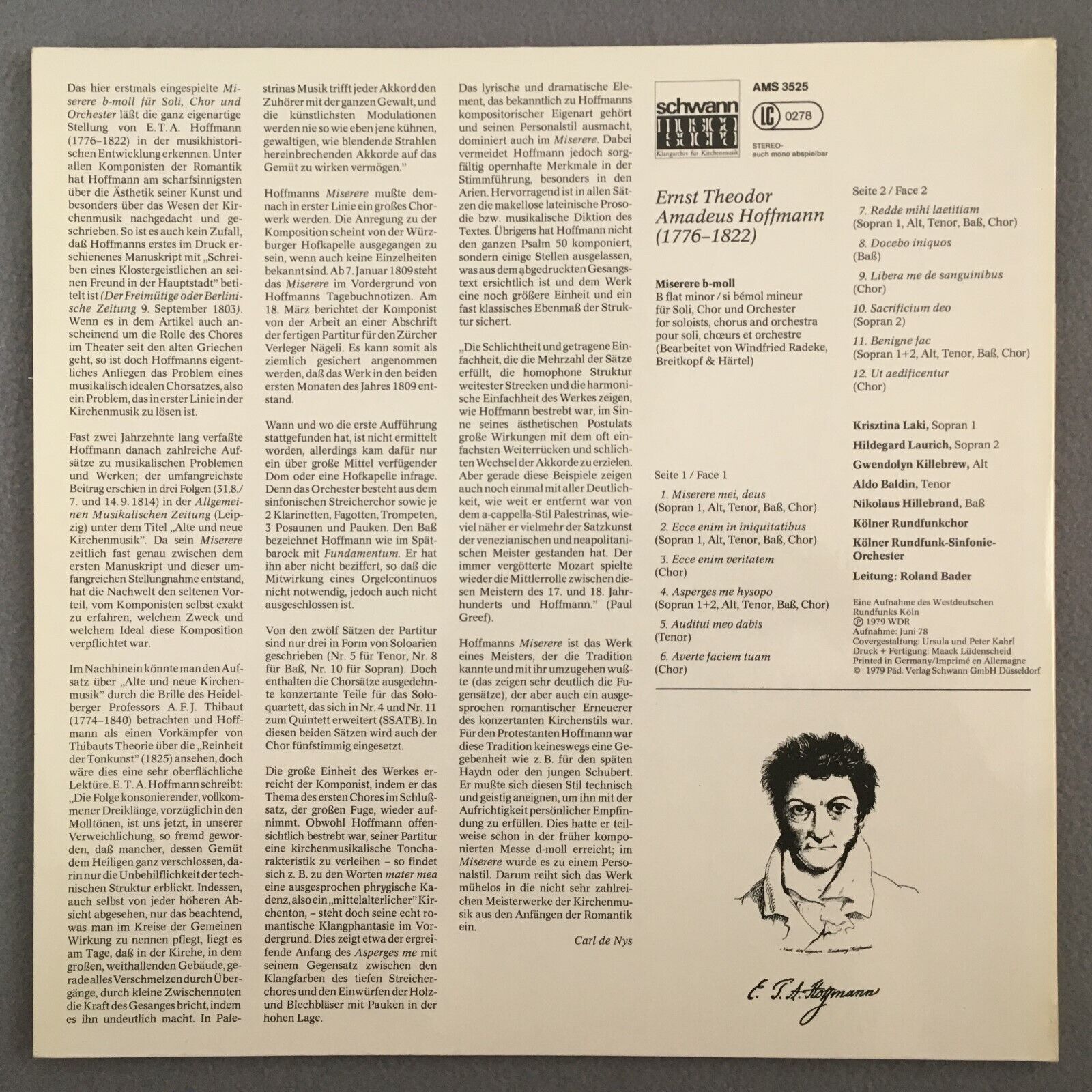 Z648 E.T.A. Hoffmann Miserere Laki Hillebrand Bader Schwann AMS 3525 Stereo