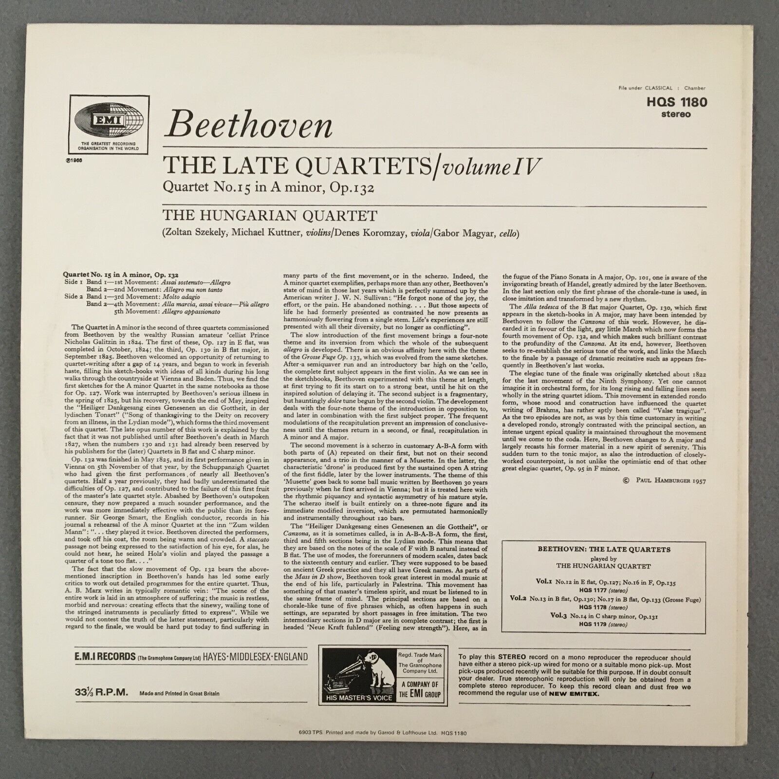 Z554 Beethoven The Late Quartets Vol.4 Hungarian Quartet EMI HQS 1180 Stereo