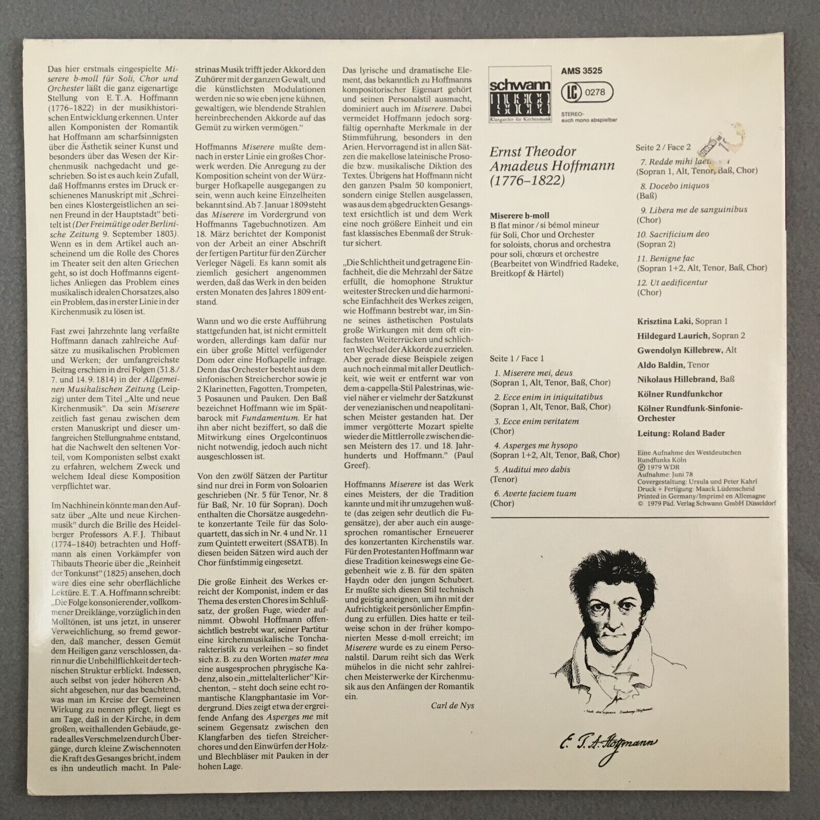 Z649 E.T.A. Hoffmann Miserere Laki Hillebrand Bader Schwann AMS 3525 Stereo