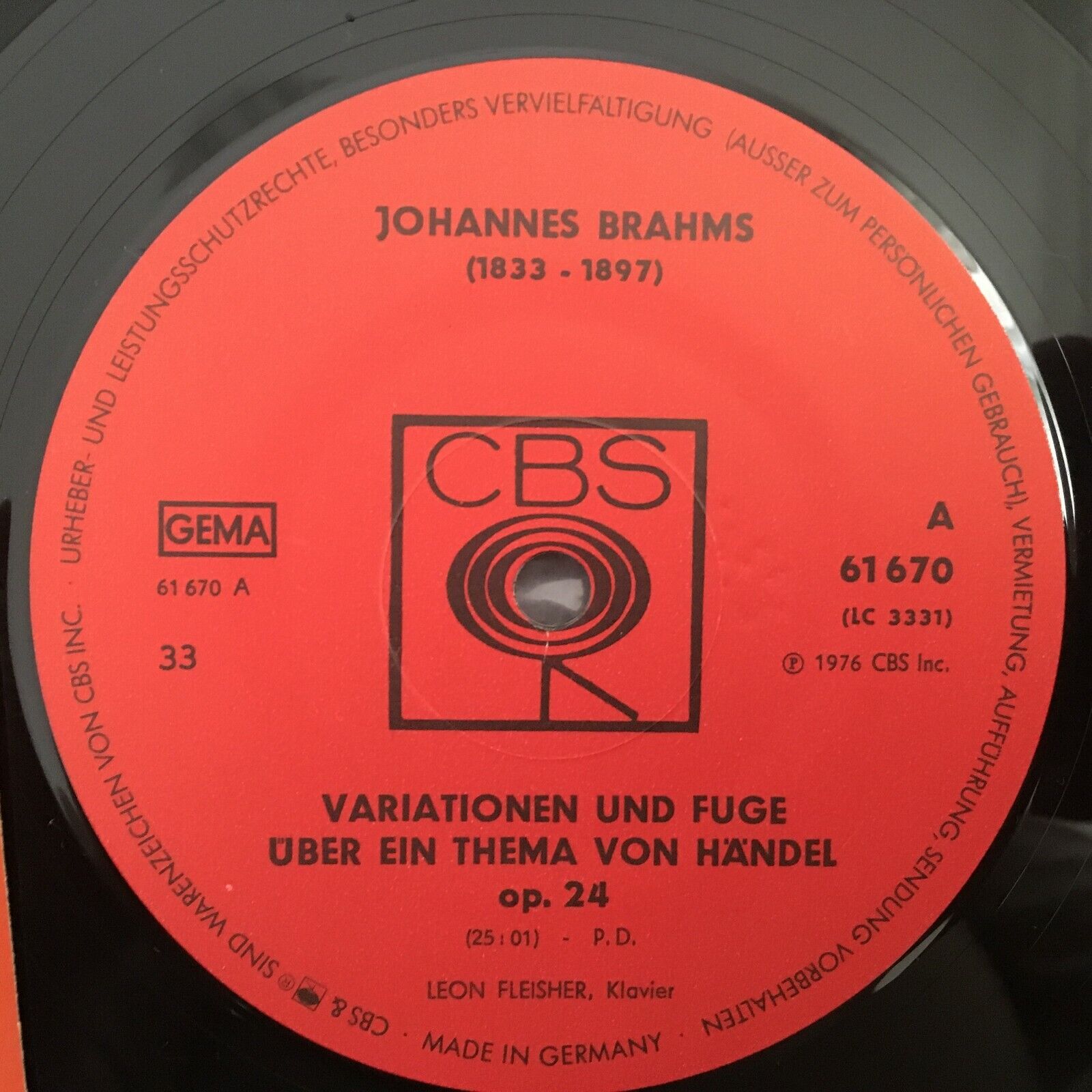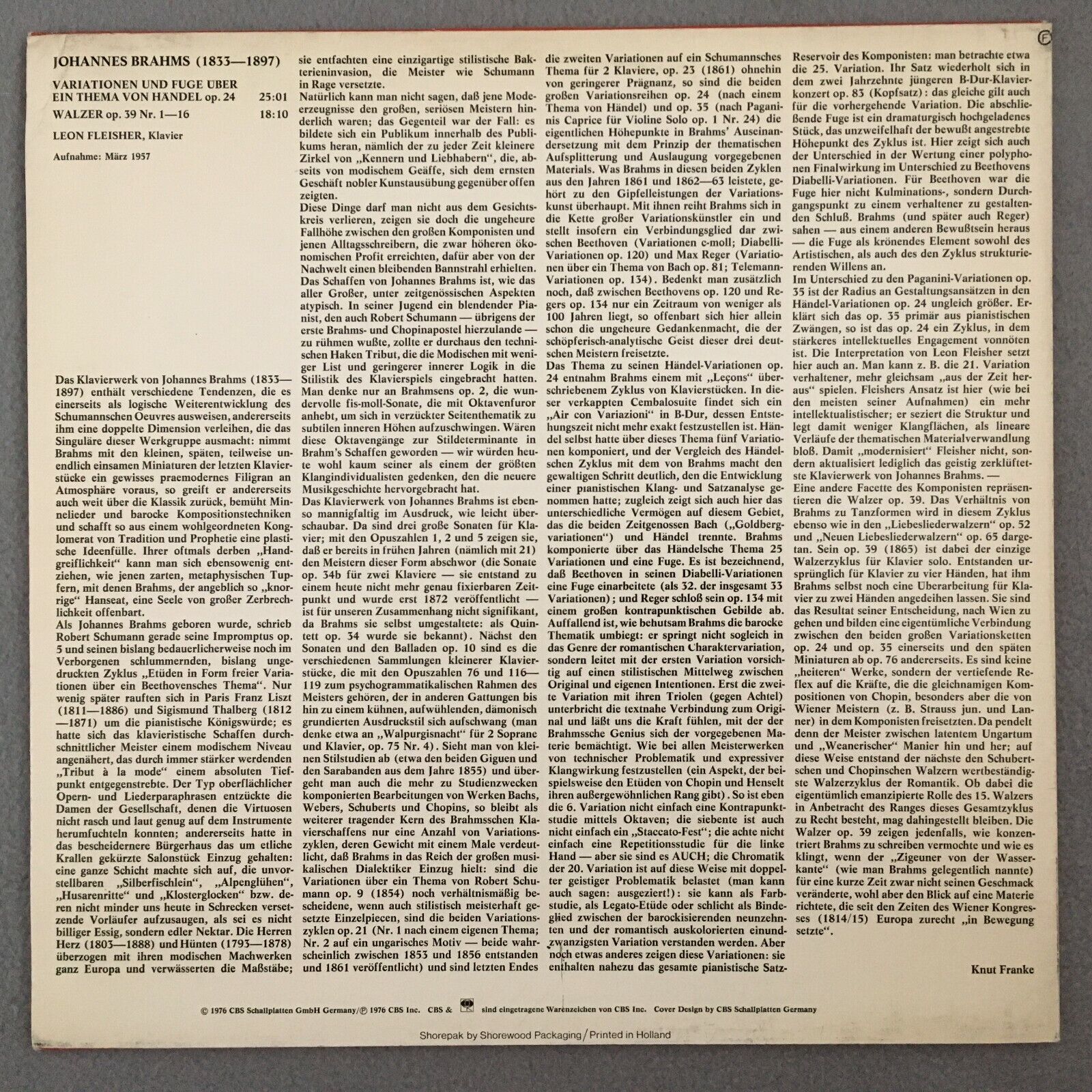 R747 Brahms Variations & Fugue Handel Theme Waltz Fleisher CBS 61 670