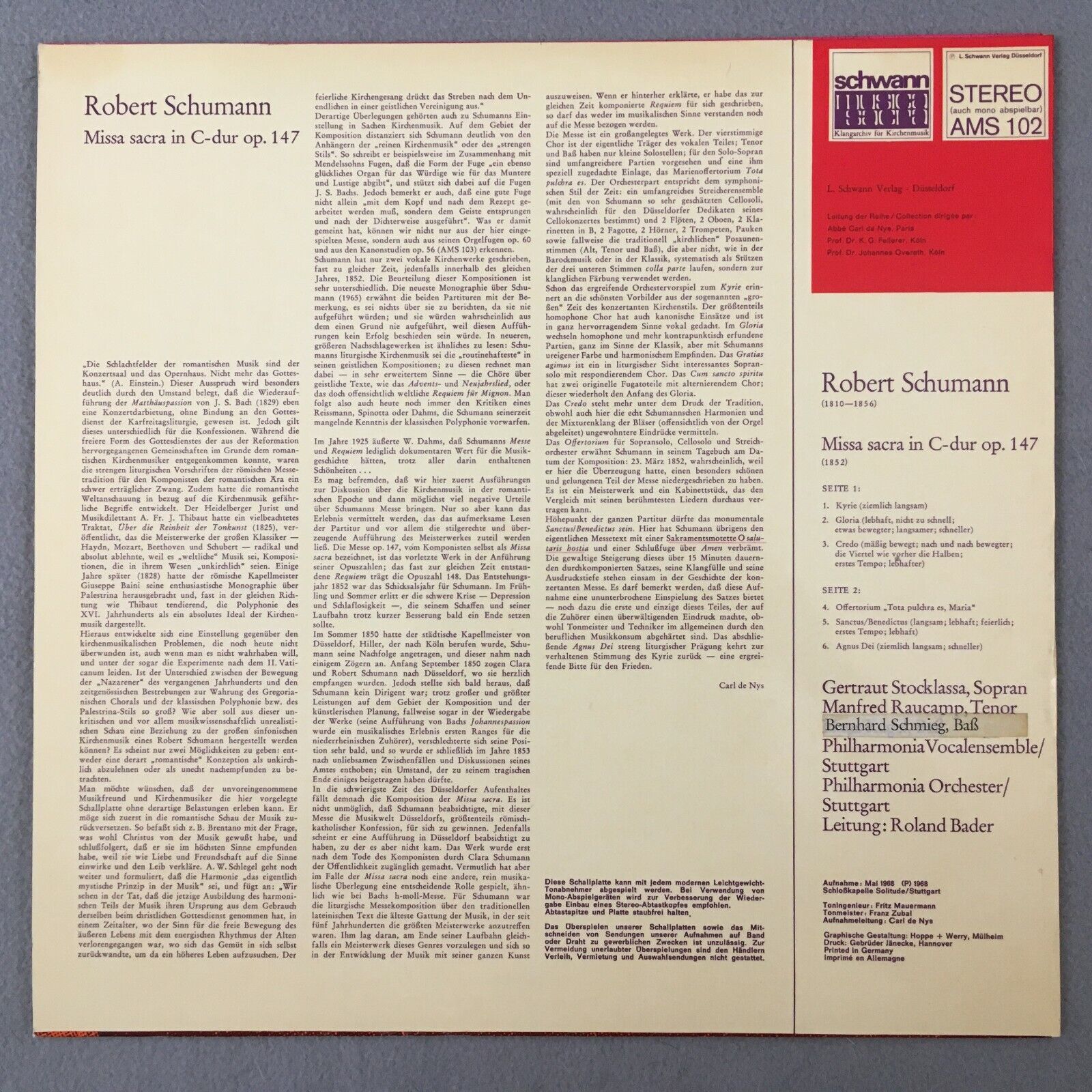 R758 Schumann Missa Sacra Stocklassa Brachmann Bader Schwann AMS 102 Stereo