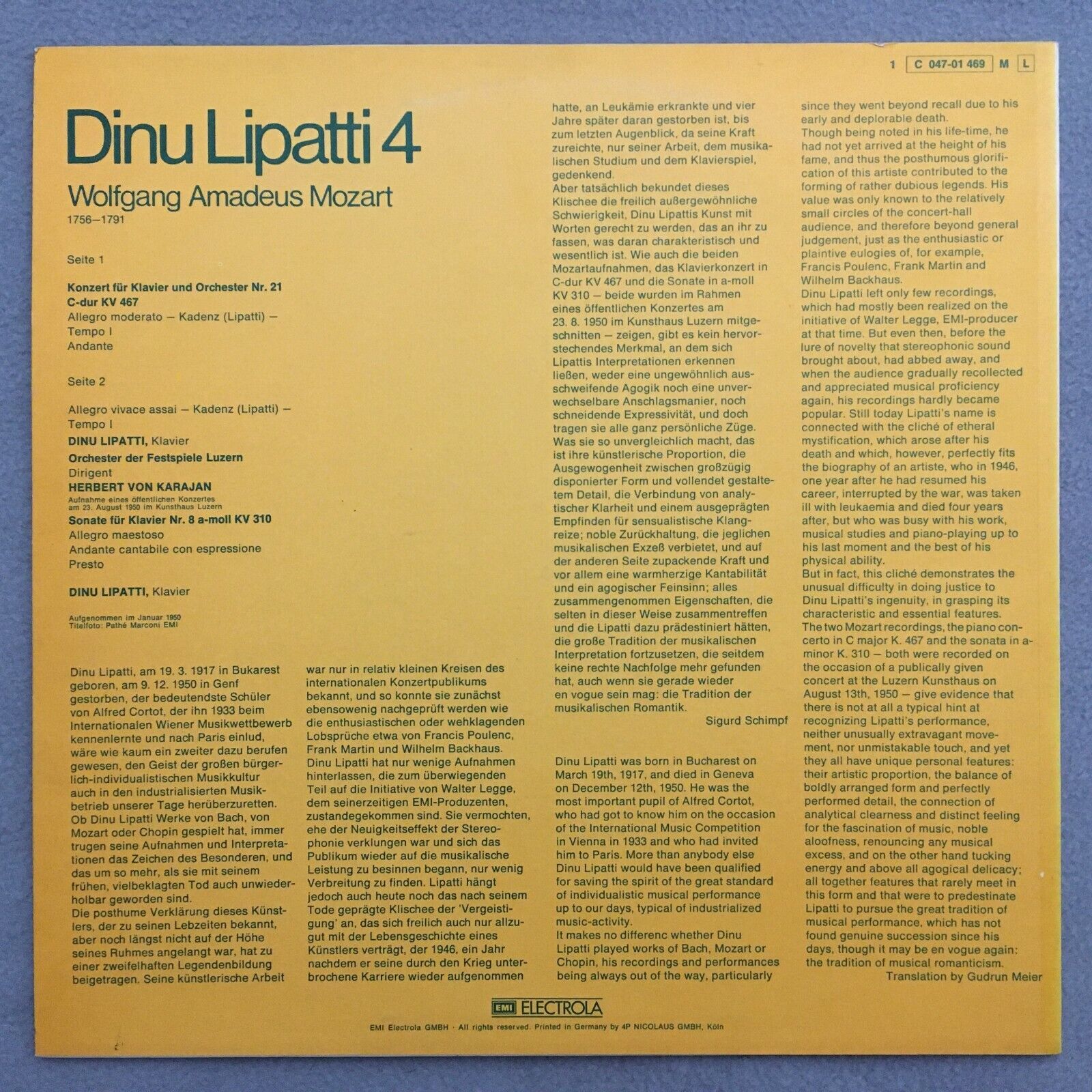 R838 Mozart Piano Concerto No.21 Sonata Lipatti 4 Dacapo 1 C 047-01 469 M