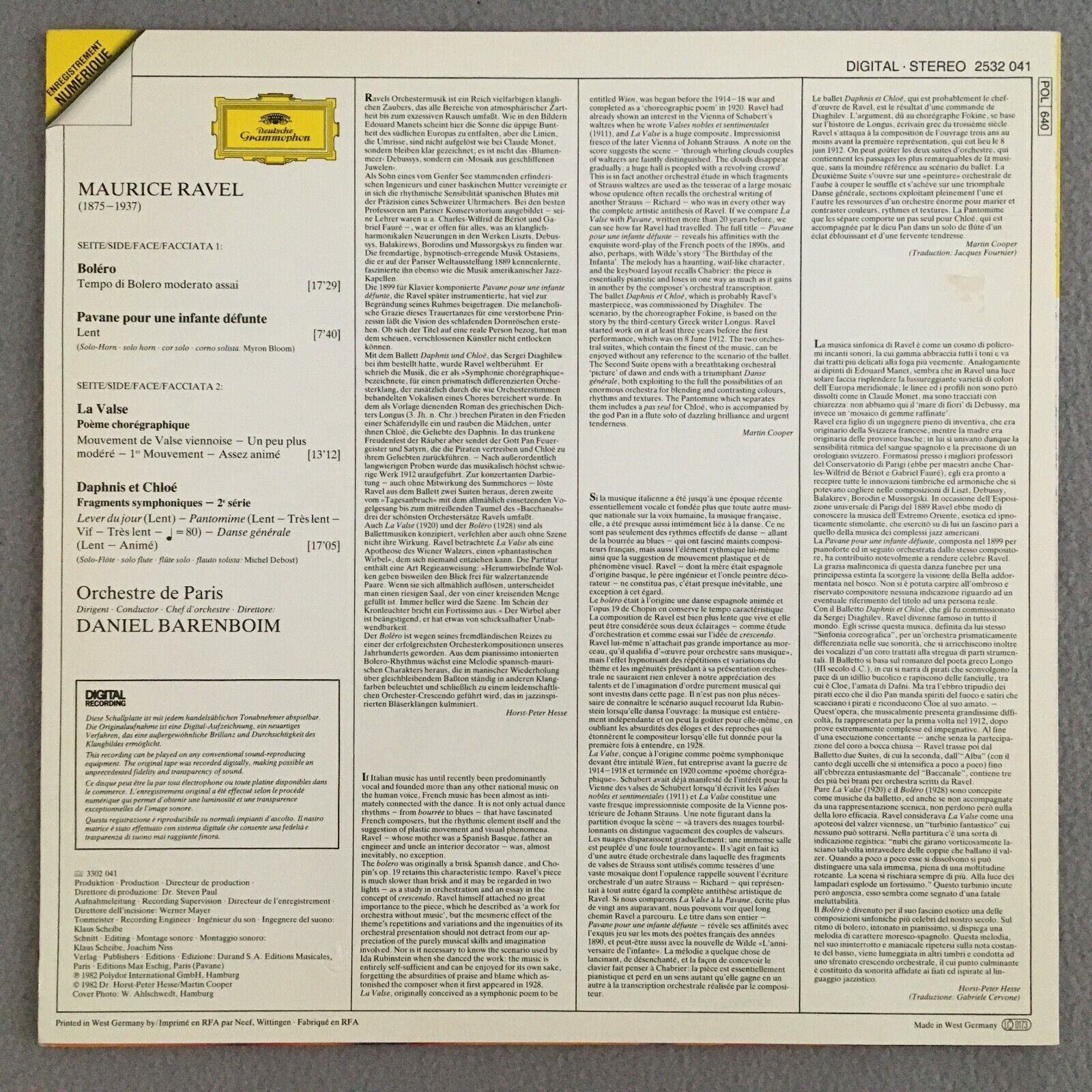 R884 Ravel Bolero La Valse Suite Barenboim DGG 2532 041 Digital Stereo