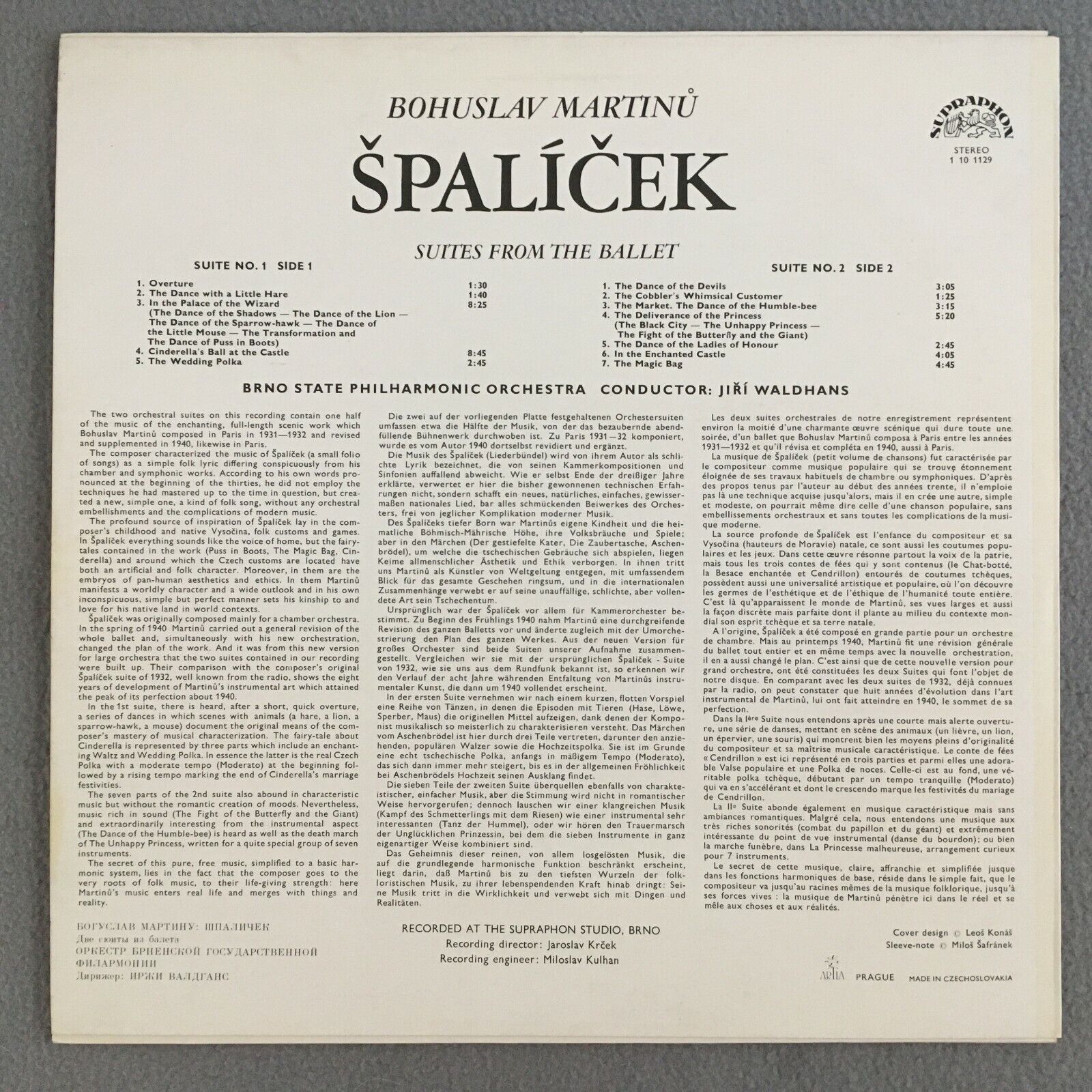 R886 Spalicek 2 Suites from Ballet Waldhans Supraphon 1 10 1129 Stereo
