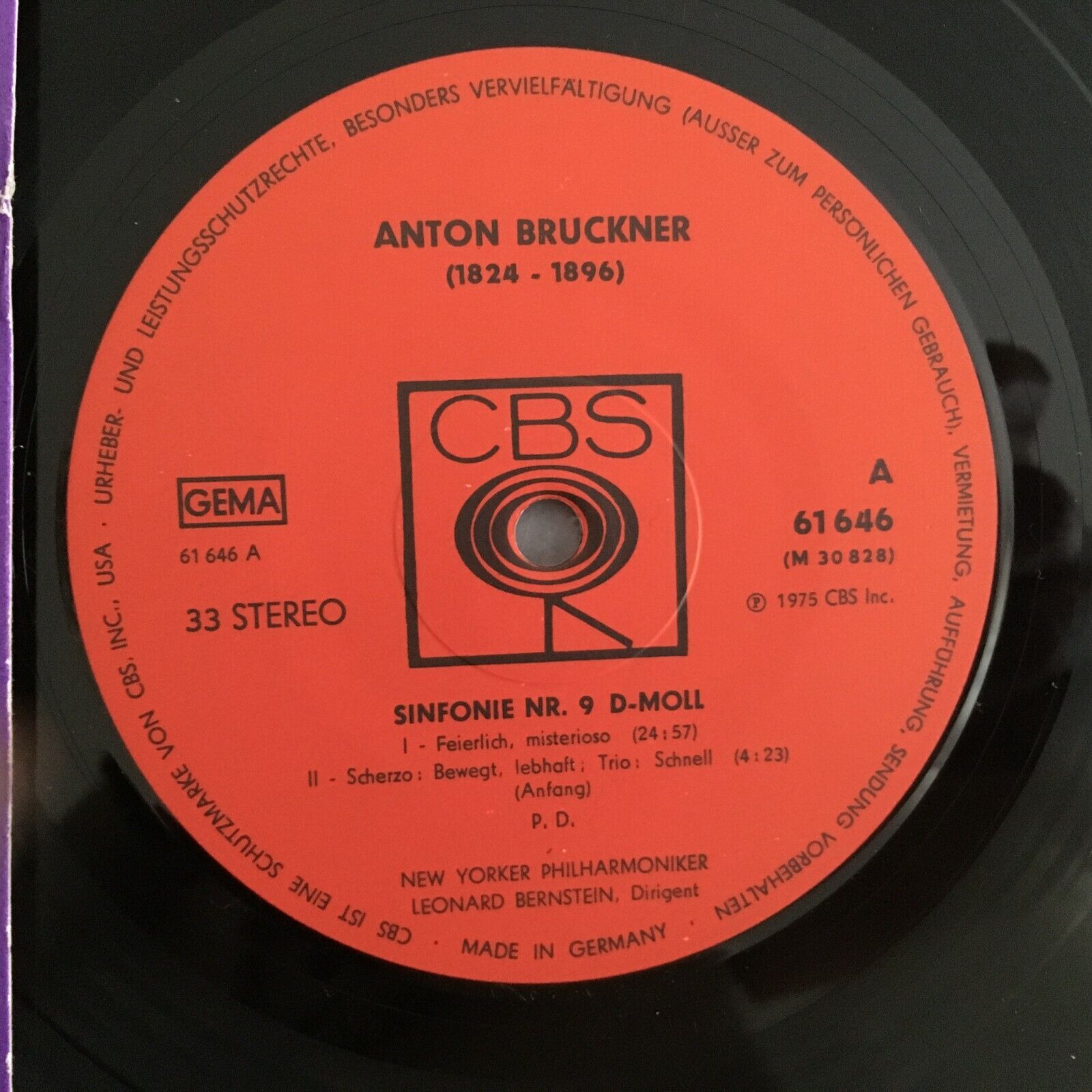 R894 Bruckner Symphony No.9 Bernstein CBS 61 646 Stereo