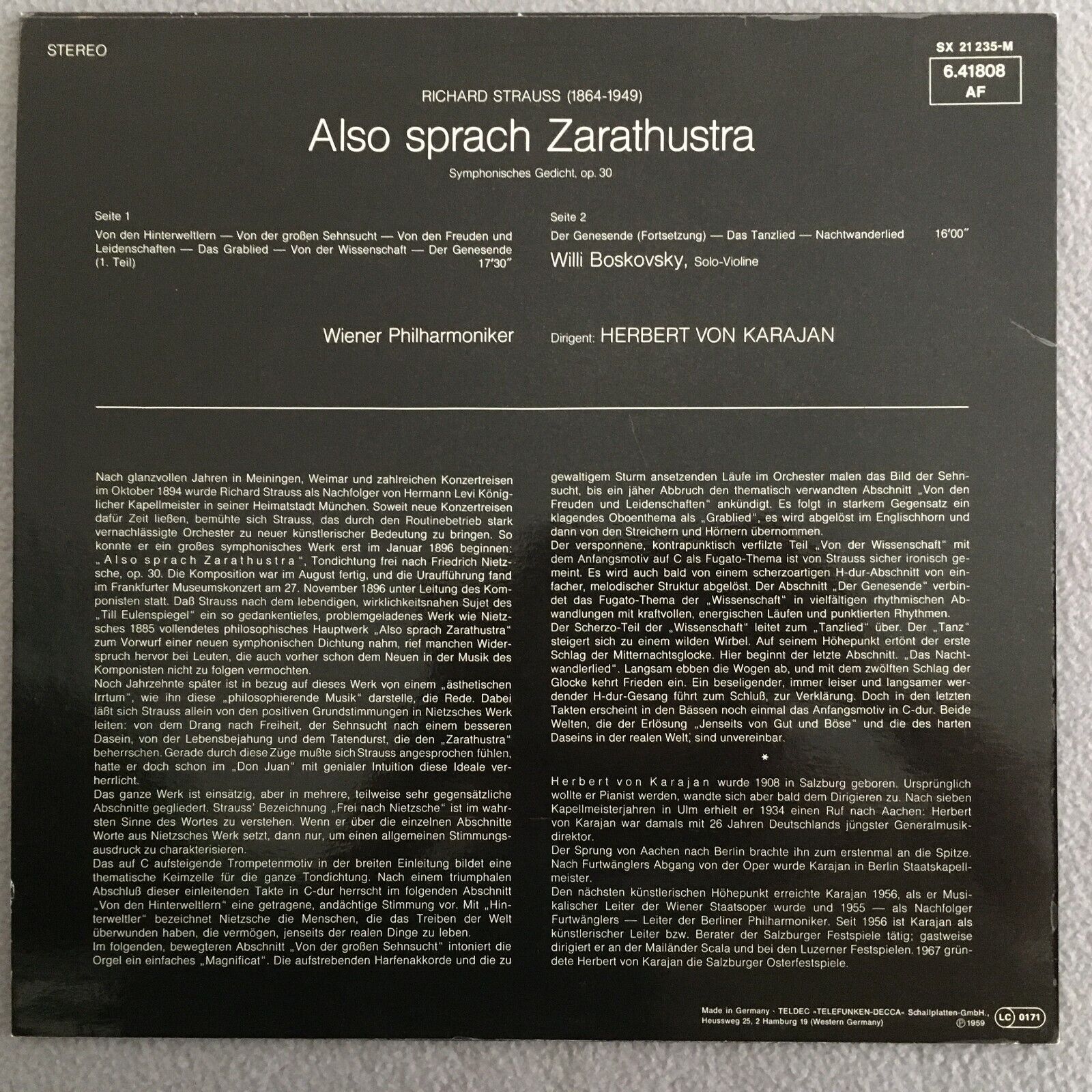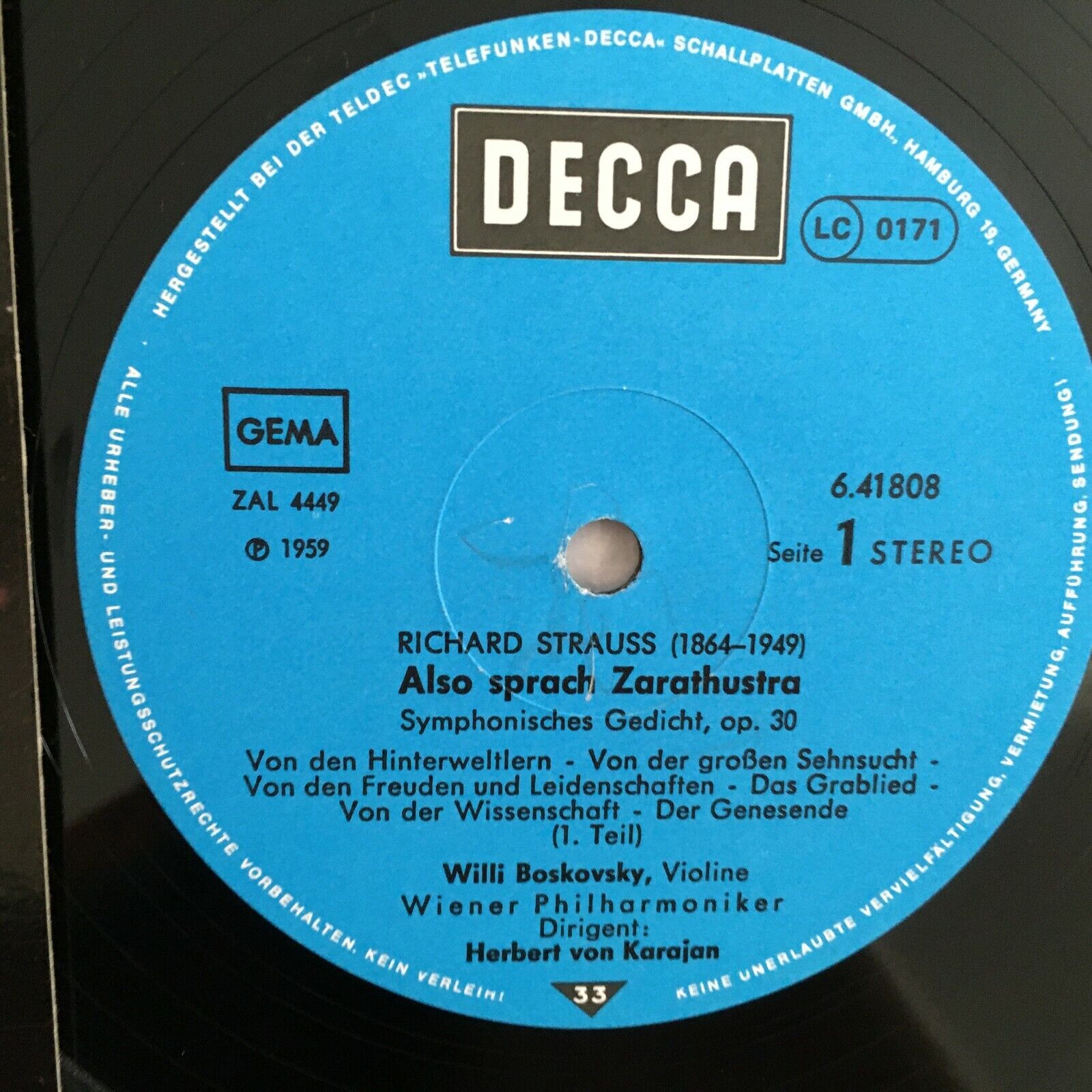 R896 R. Strauss Zarathustra Boskovsky Karajan VPO DECCA 6.41808 AH Stereo