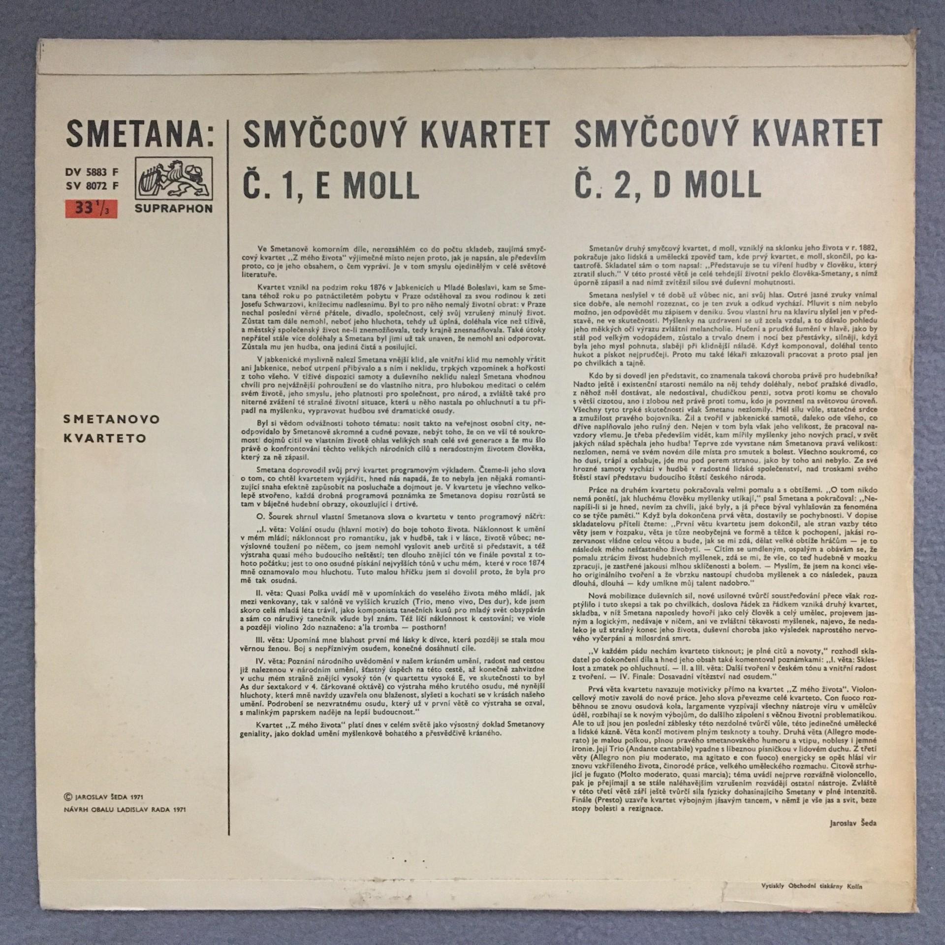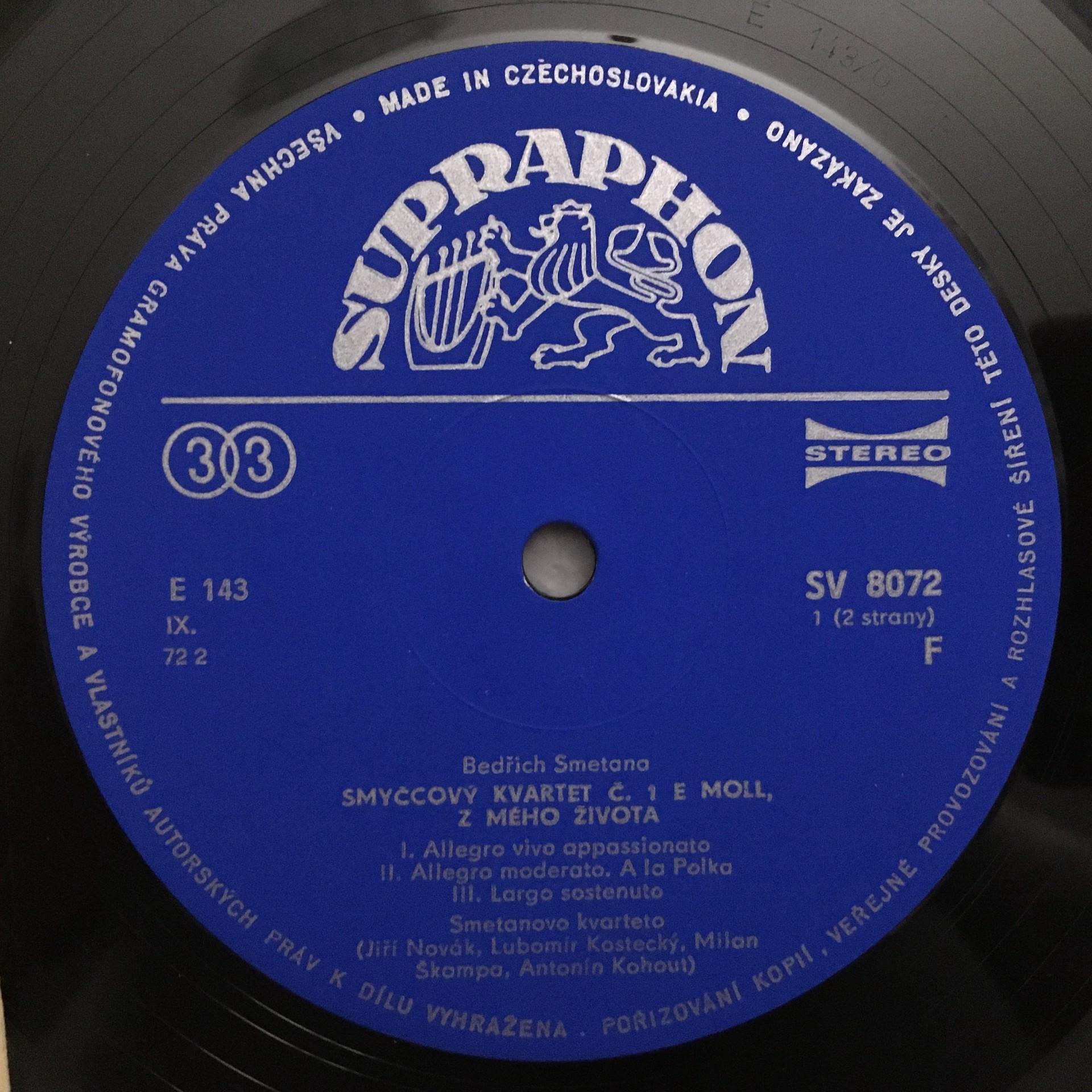 L915 Smetana Symphonic Quartets Smetana Quartet Supraphon SV 8072 F Stereo