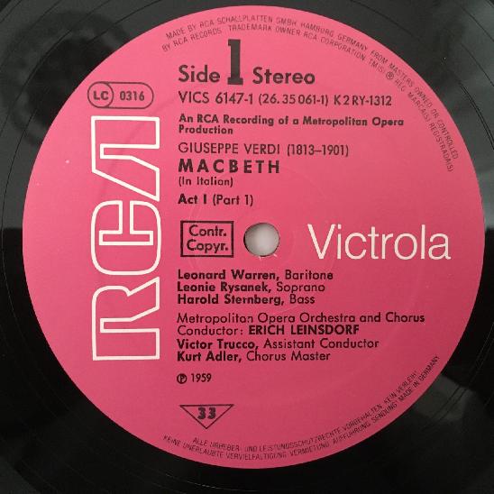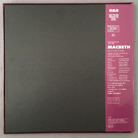 D143 Verdi Macbeth Rysanek Bergonzi Leinsdorf 3LP RCA 26.35061 Stereo