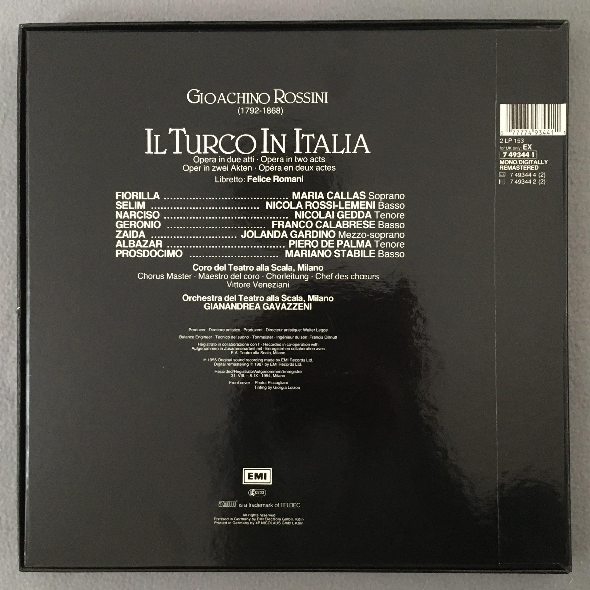 D155 Rossini il Turco in Italia Callas Gedda Gavazzeni 2LP EMI 7 49344 1 Digital