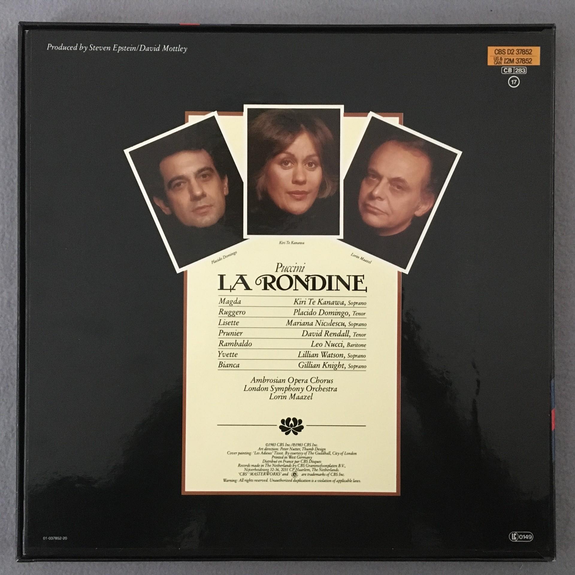 D156 Puccini La Rondine Te Kanawa Domingo Maazel 2LP CBS D2 37852 Digital Ster