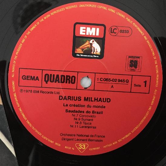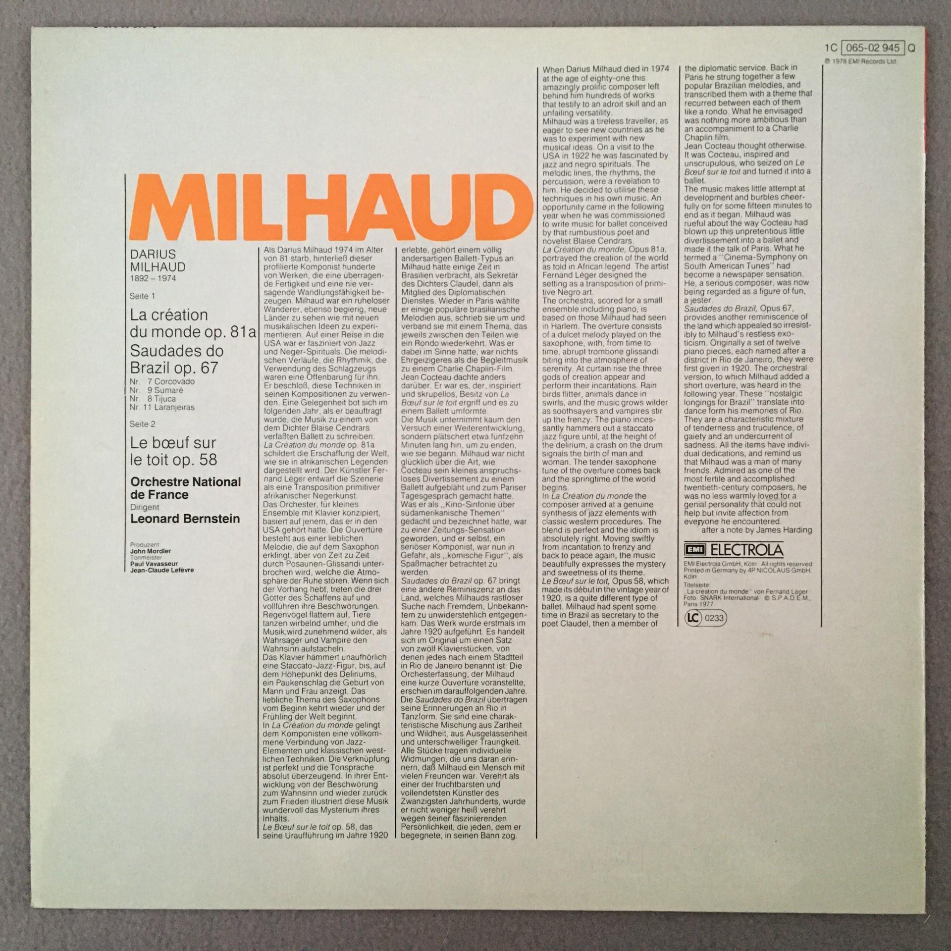 L918 Milhaud La Creation Du Monde Bernstein EMI 1C 065-02 945 Q Quadro