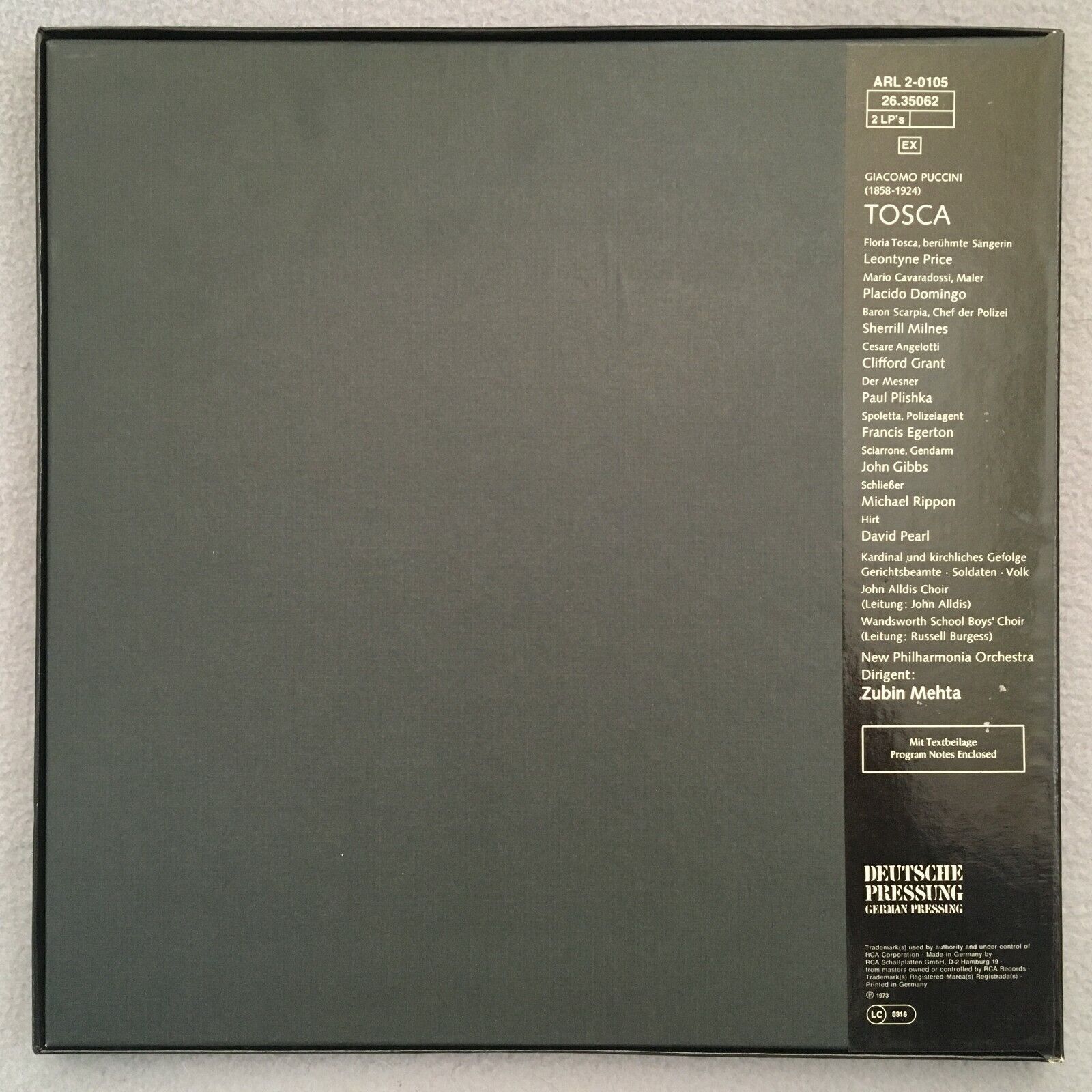 G531 Puccini Tosca Price Domingo Milnes Mehta 2LP RCA ARL 2-0105 Stereo