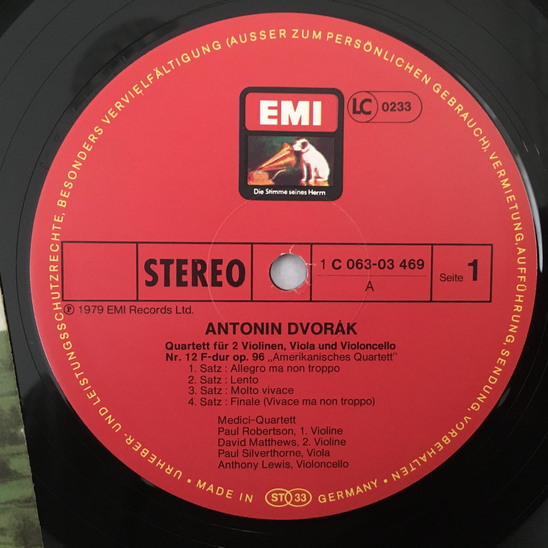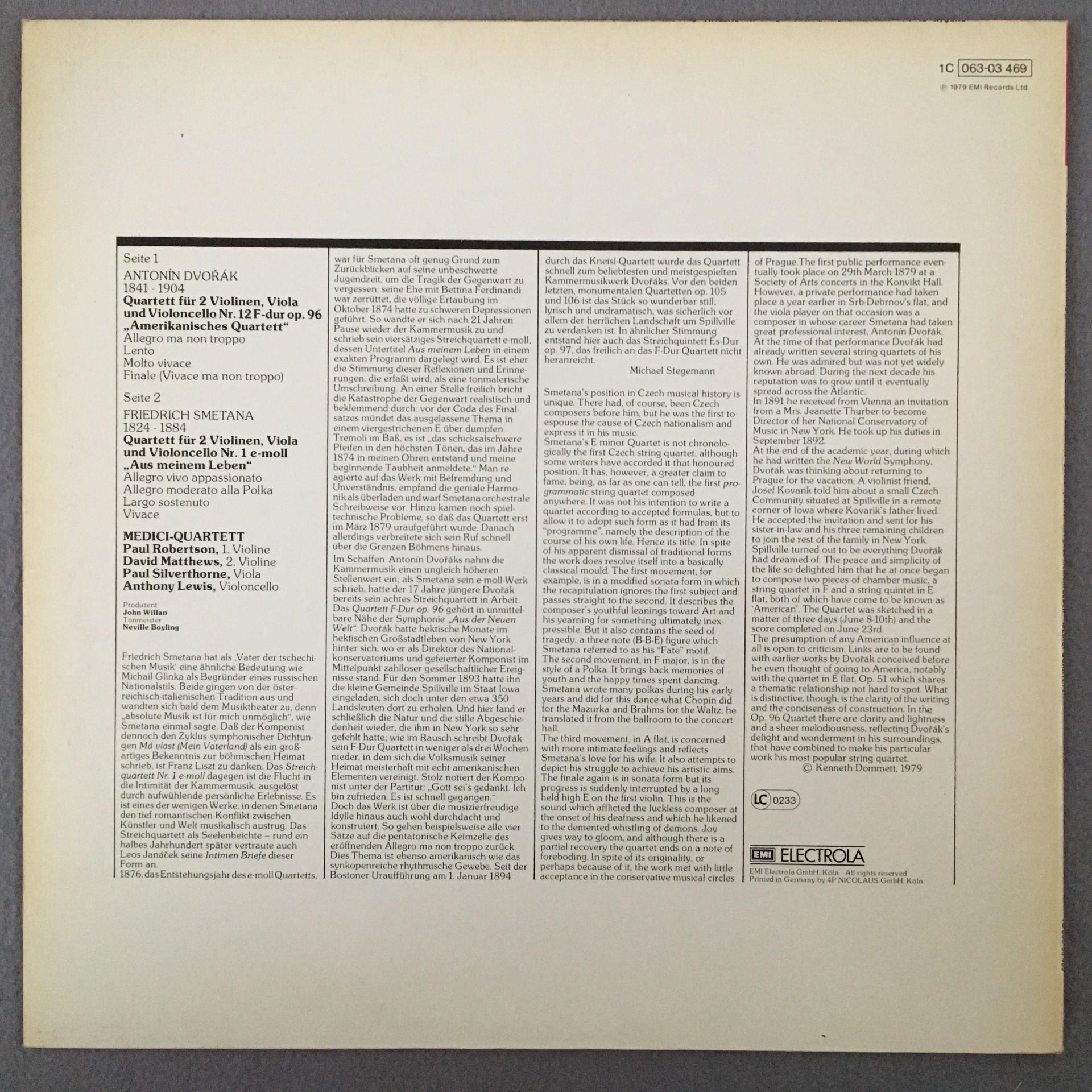L923 Dvorak Smetana String Quartets Medici Quartet EMI 1C 063-03 469 Stereo