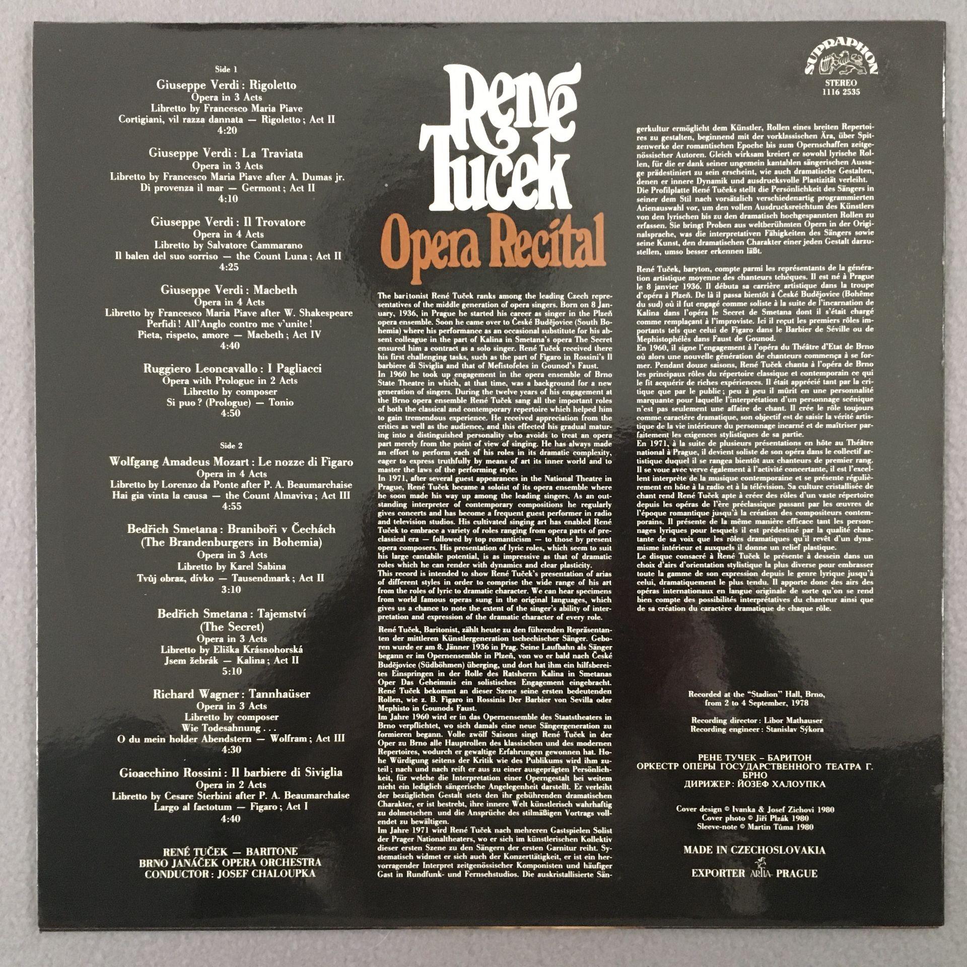 L930 Rene Tucek Opera Recital Chaloupka Supraphone 1116 2535 Stereo