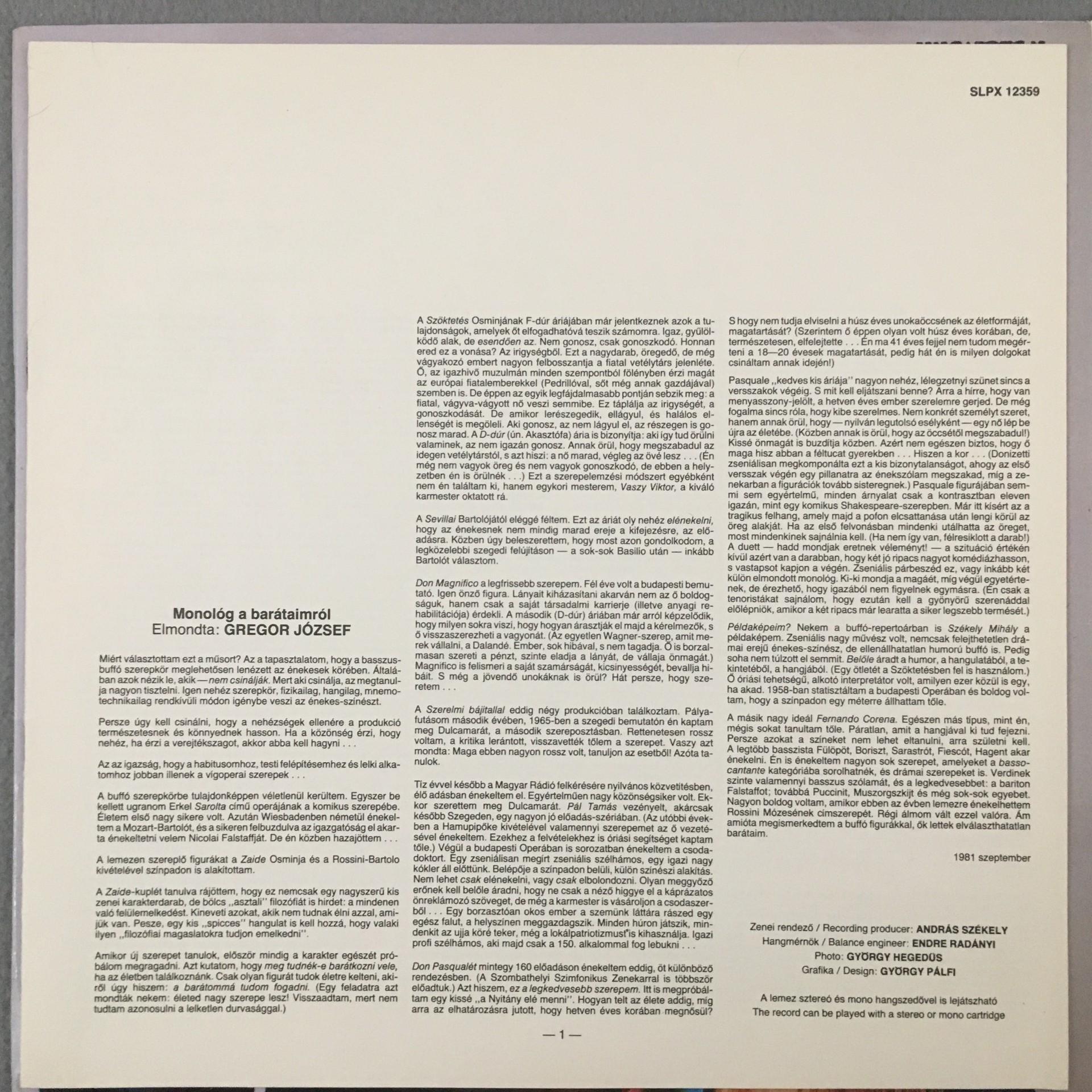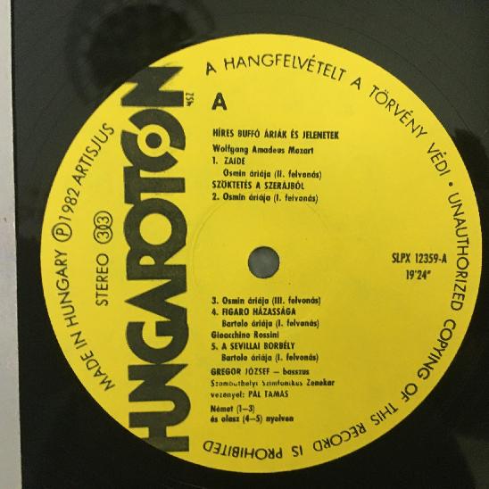 L939 Gregor Great Buffo Scenes Mozart Rossini Pal Hungaroton SLPX 12359 Stereo