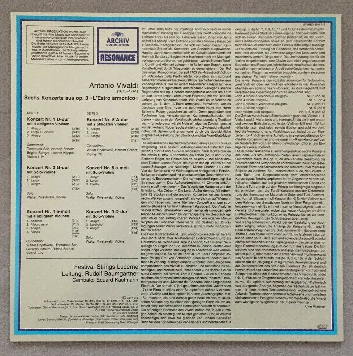 P222 Vivaldi 6 Concertos Op.3 Baumgartner DGG Archiv 2547 012 Stereo