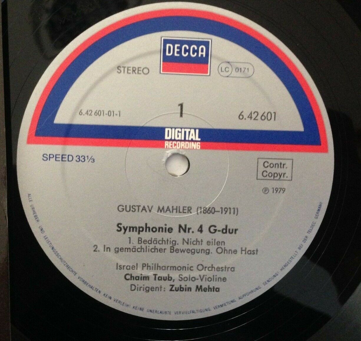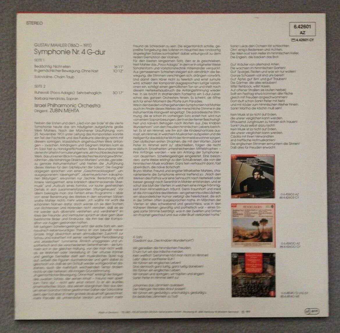 P310 Mahler Symphony No.4 Hendricks Mehta DECCA 6.42601 AZ Digital Stereo