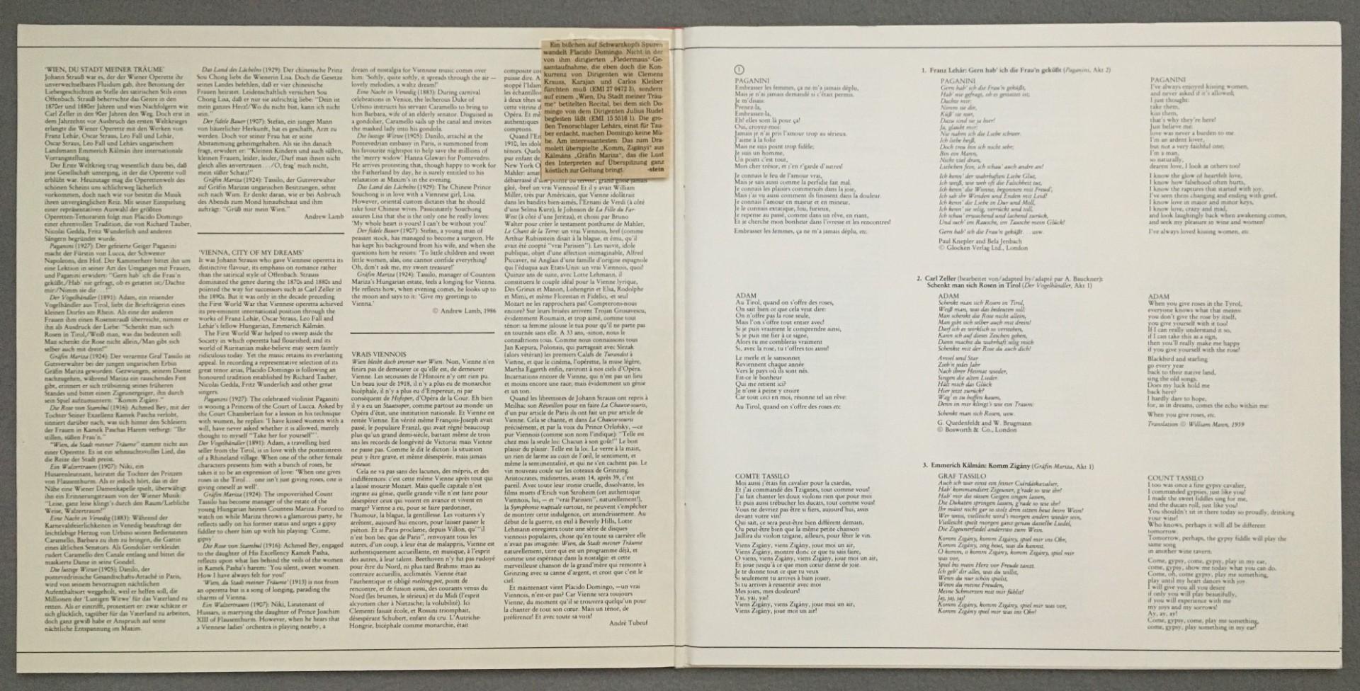 L966 Domingo Vienna City of my Dreams Rudel EMI 15 5516 1 Digital Stereo