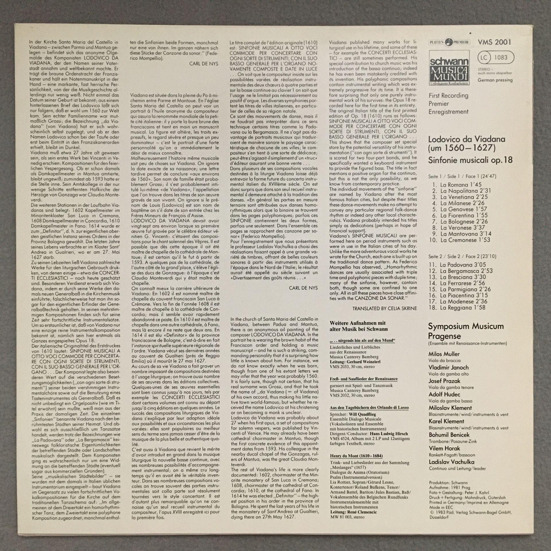 L969 da Viadana Symphony Muller Janoch Klement Vachulka Schwann VMS 2001 Stereo