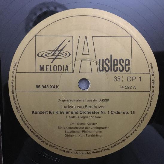 L973 Beethoven Piano Concerto No.1 Gilels Sanderling Melodiya 85 943 XAK Stereo