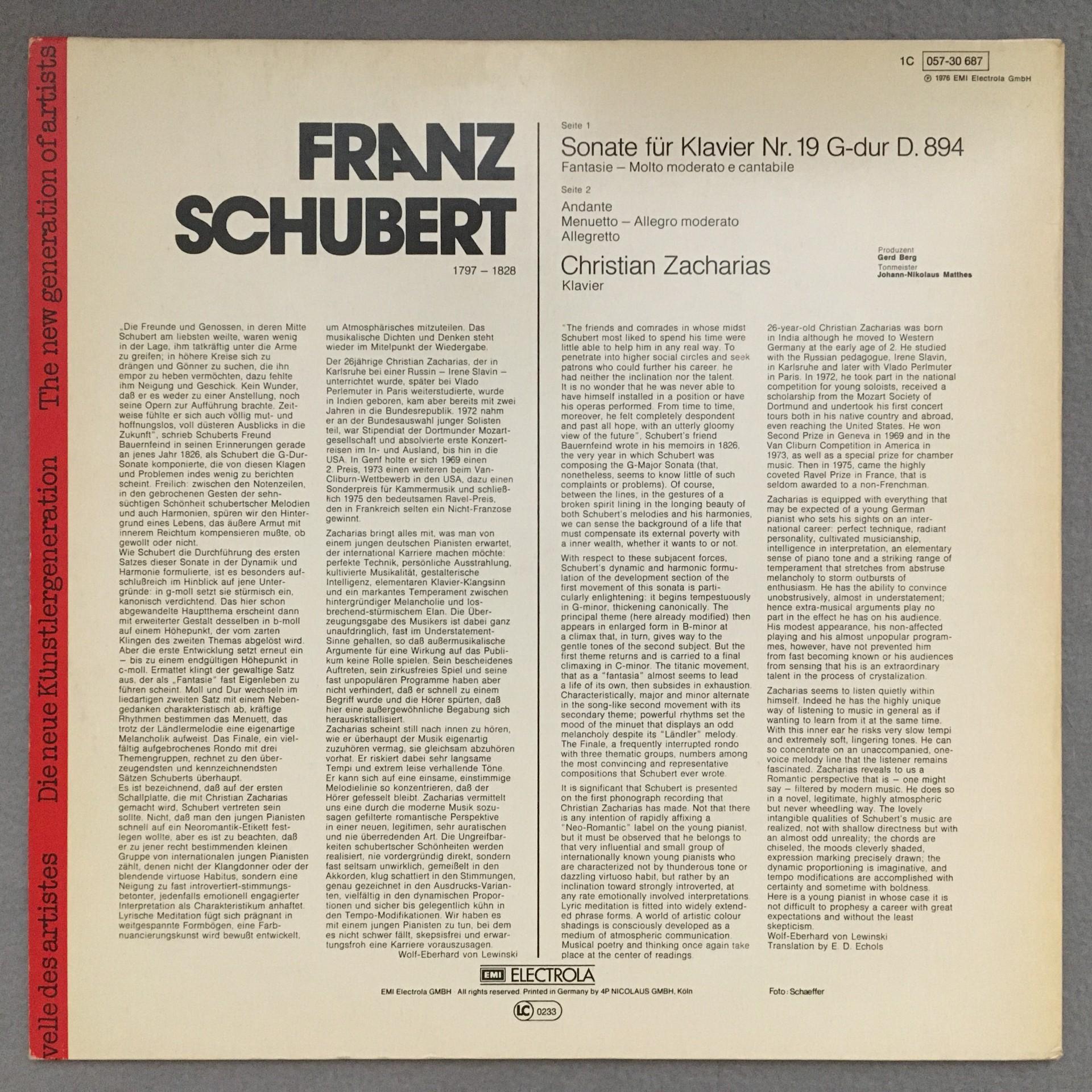 L975 Schubert Piano Sonata Zacharias EMI 1C 057-30 687 Stereo
