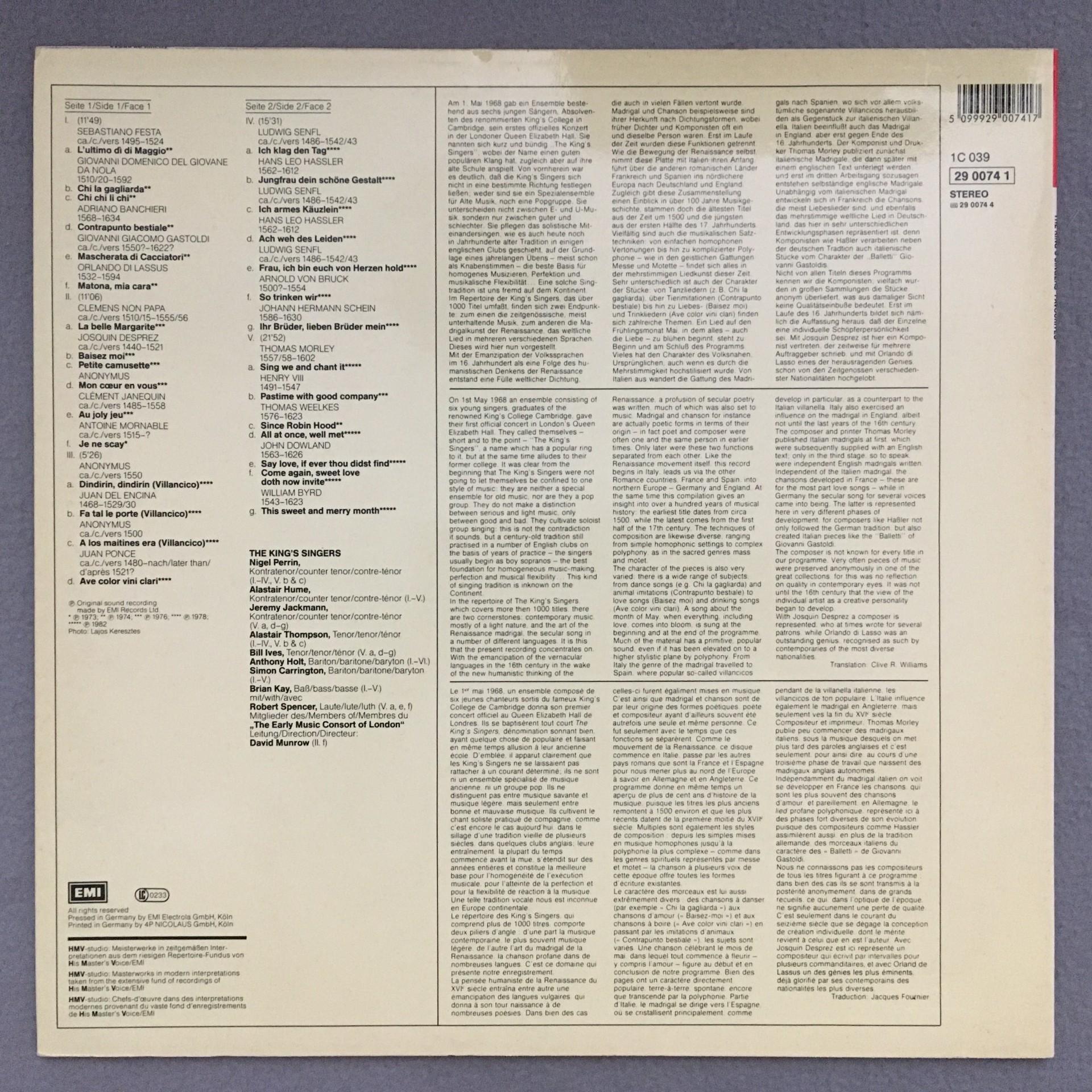 L976 The King´s Singers´ Favourites Munrow EMI 1C 039 29 0074 1 Stereo