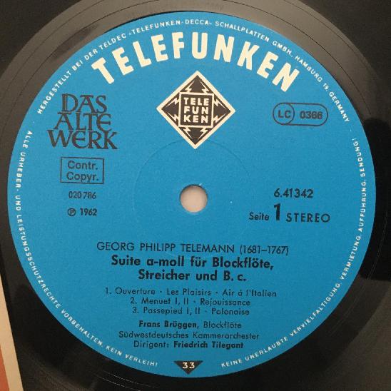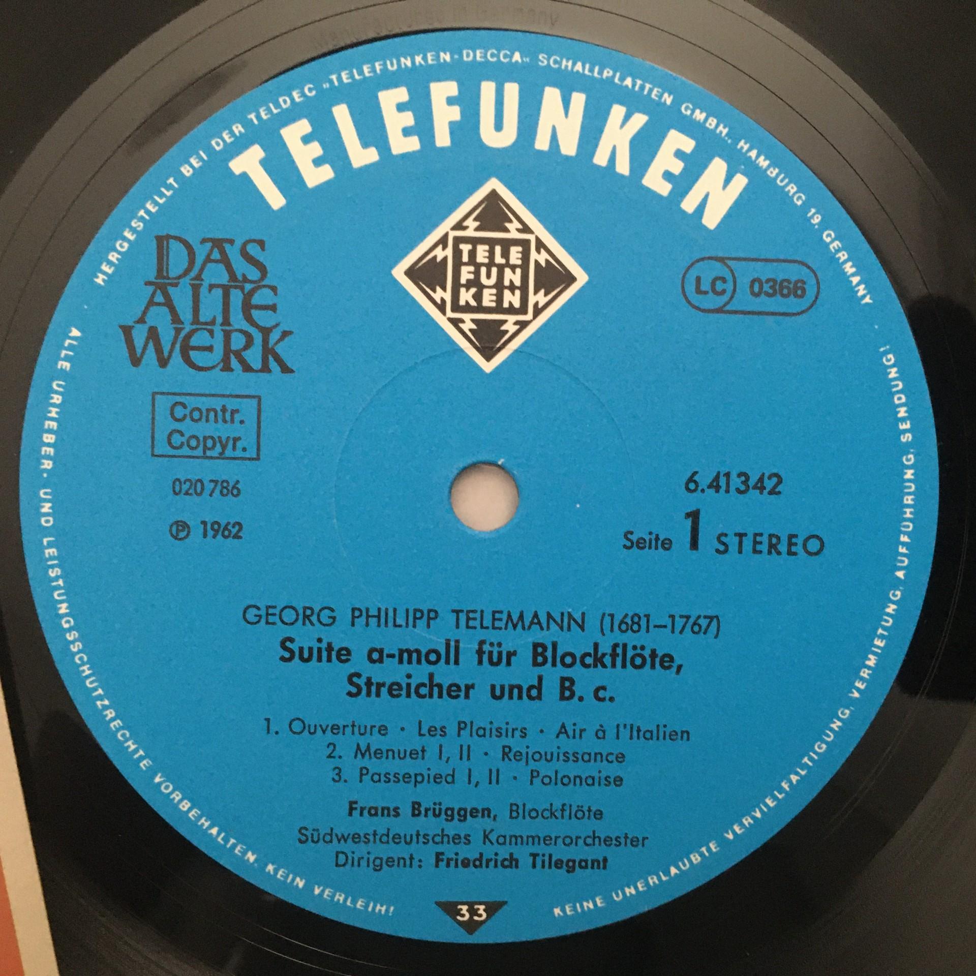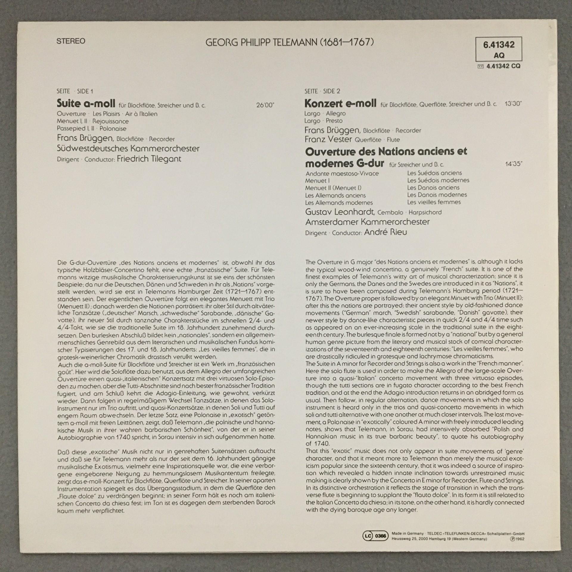 L983 Telemann Recorder Works Brüggen Leonhardt Rieu Telefunken 6.41342 AQ Stereo