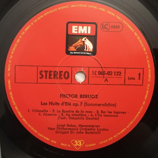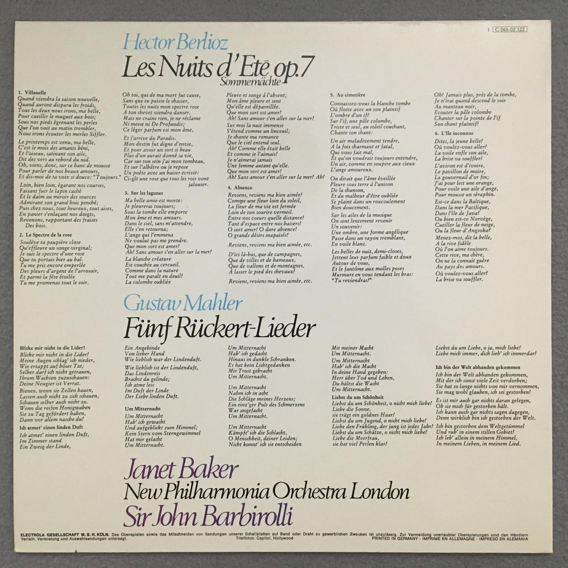 L988 Berlioz Sommernights Mahler Songs Baker Barbirolli EMI 1 C 065-02 122 St