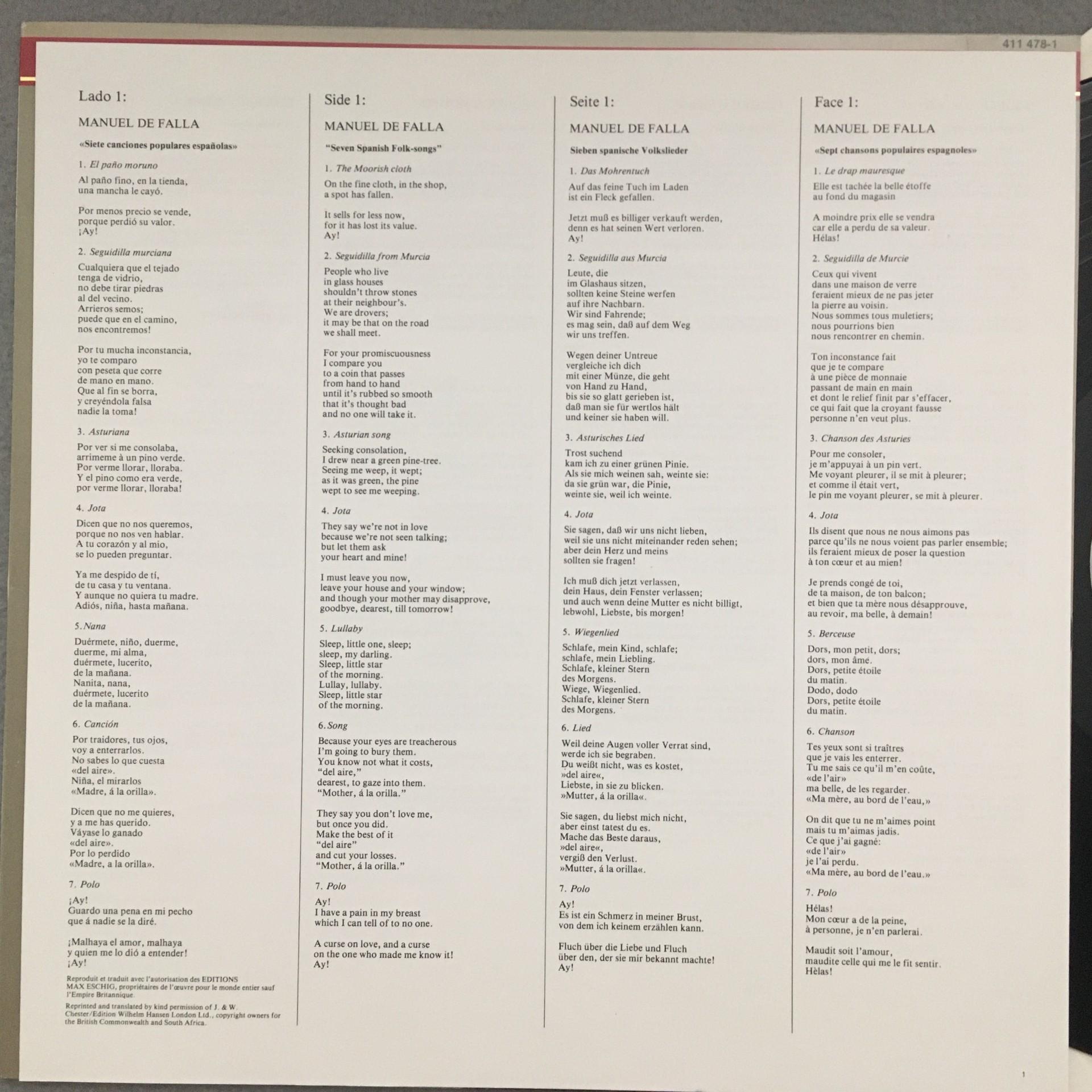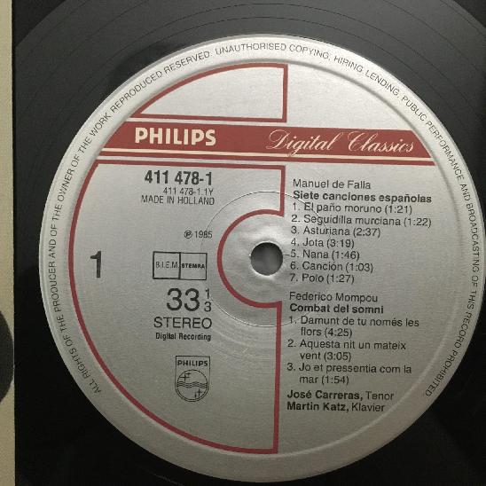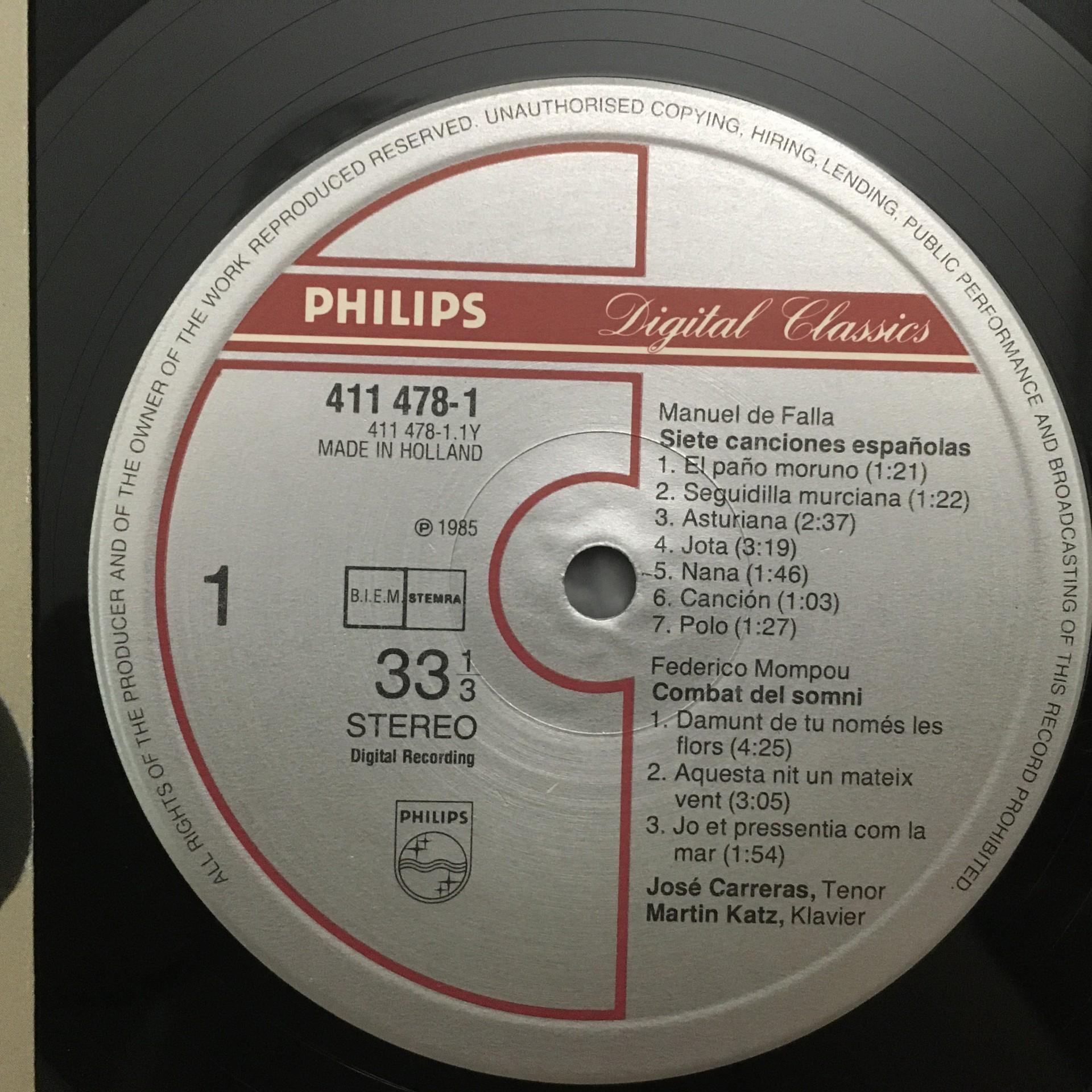 L990 Spanish Songs Falla Mompou Carreras Katz Philips 411 478-1 Digital Stereo