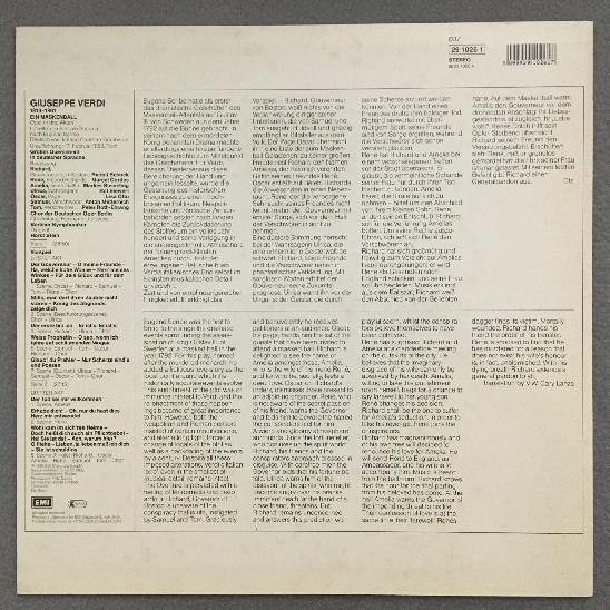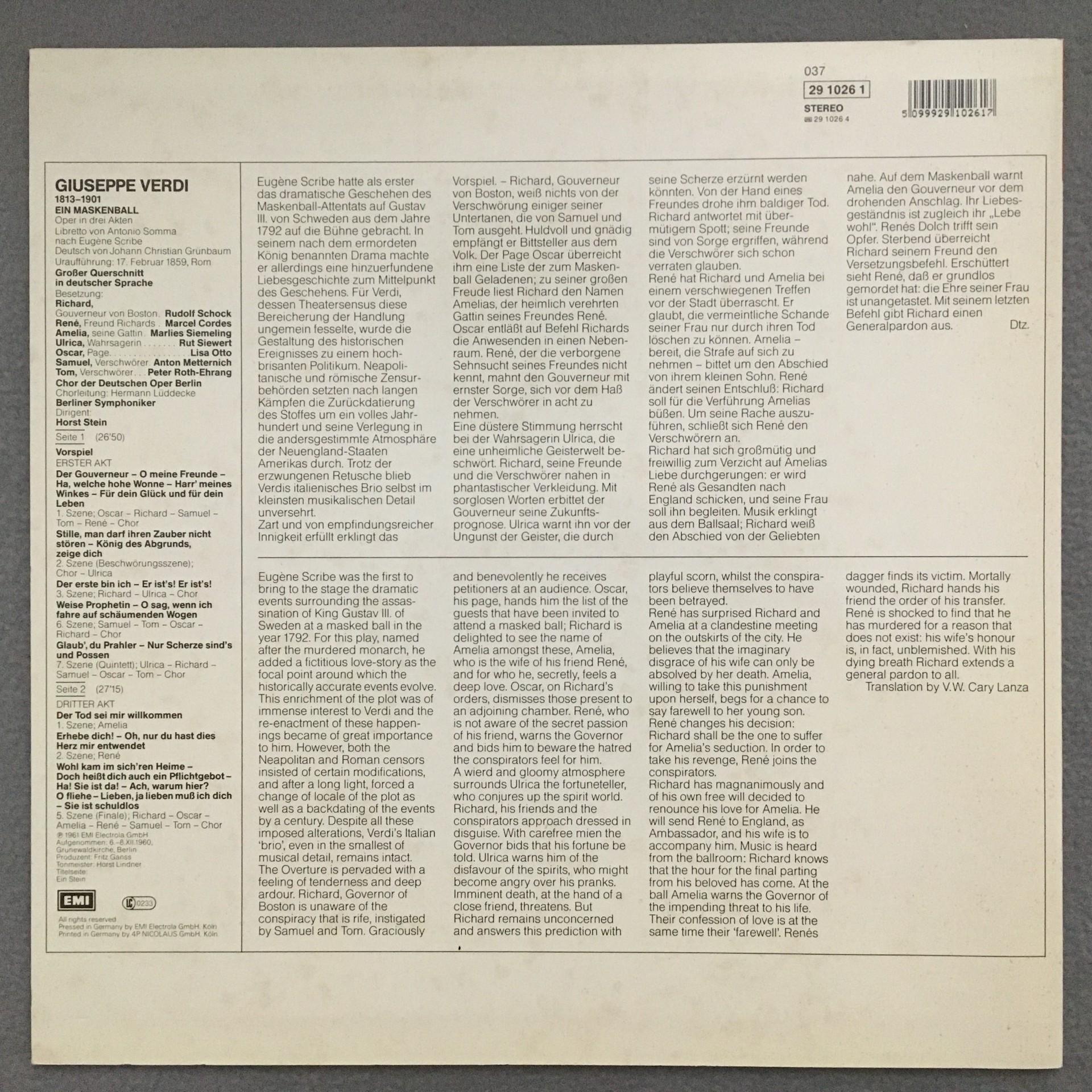 L993 Verdi Masked Ball Siemeling Schock Cordes Stein EMI 29 1026 1 Stereo