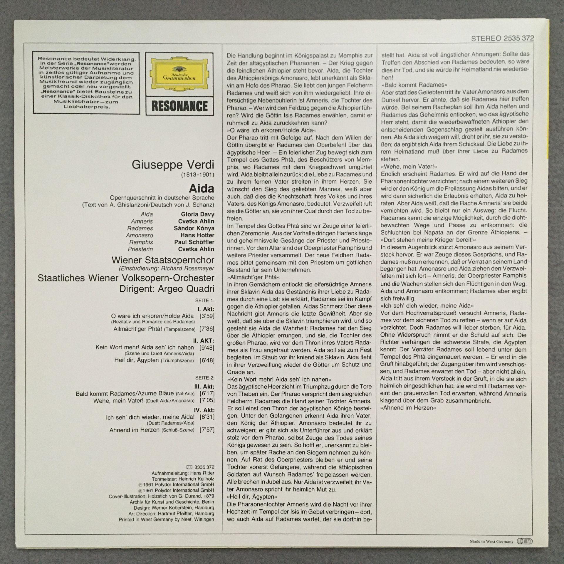 L995 Verdi Aida Davy Ahlin Konya Hotter Quadri DGG 2535 372 Stereo