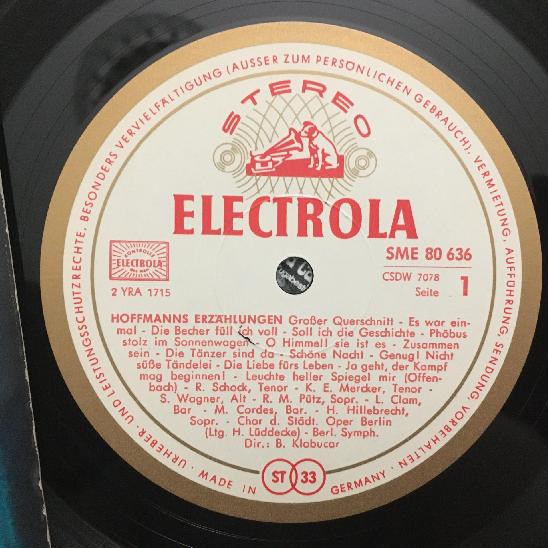 L998 Offenbach Hoffmanns Erzählungen Pütz Klobucar Electrola w/g SME 80 636 St