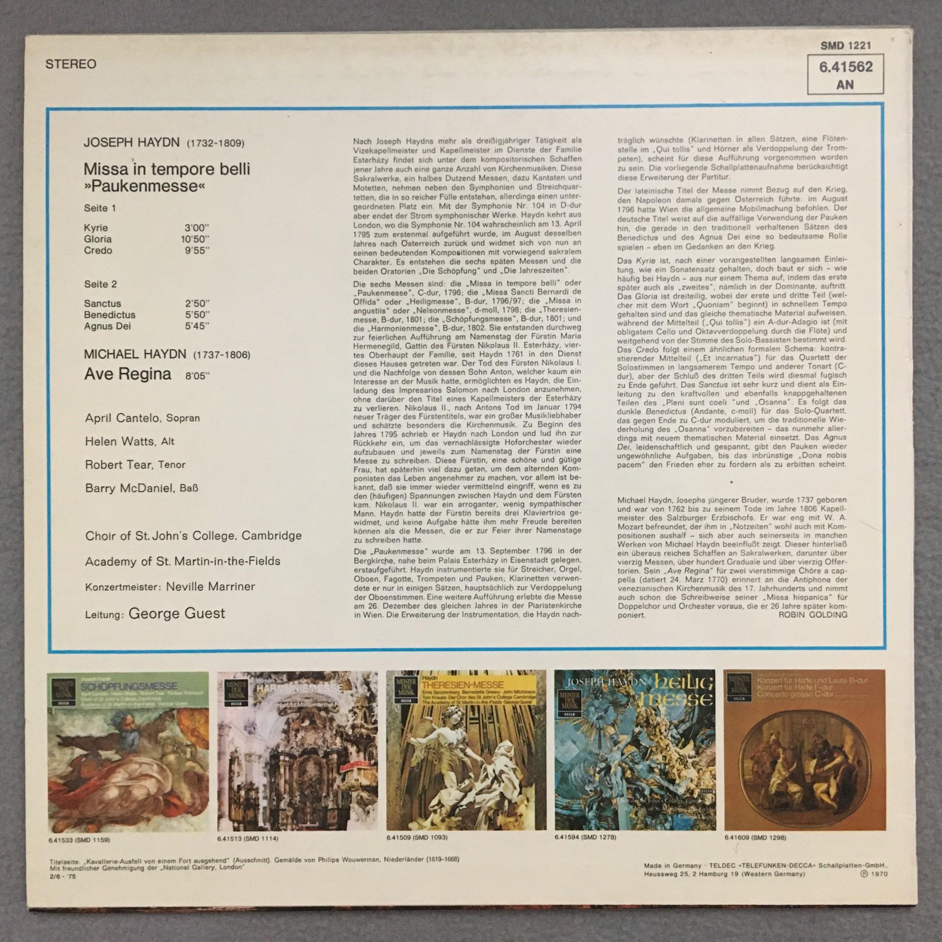 M003 Haydn Mass Watts Tear Guest DECCA 6.41562 AN Stereo