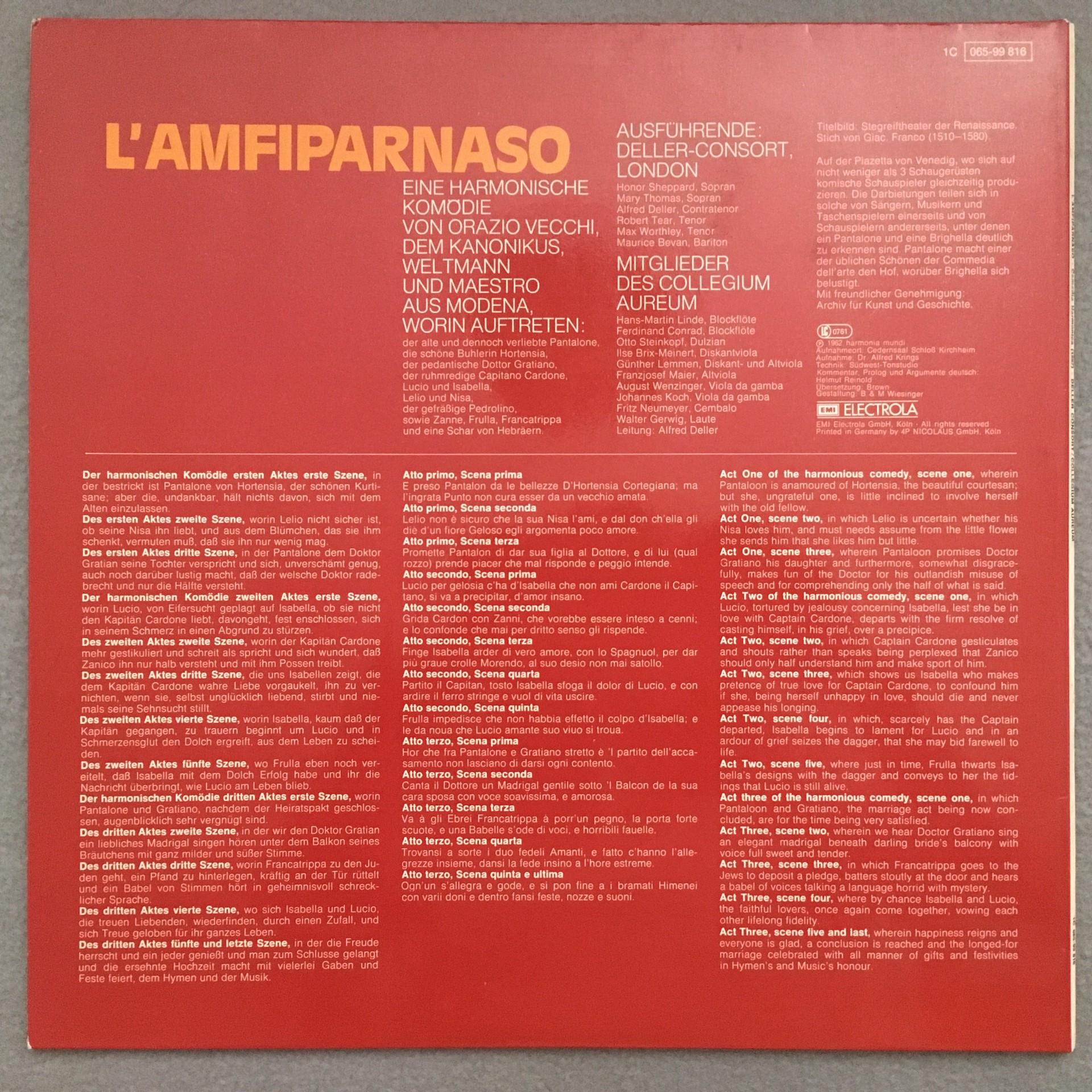 M004 Vecchi L´Amfiparnaso Collegium Aureum Deller C. HM 1C 065-99 816 Stereo