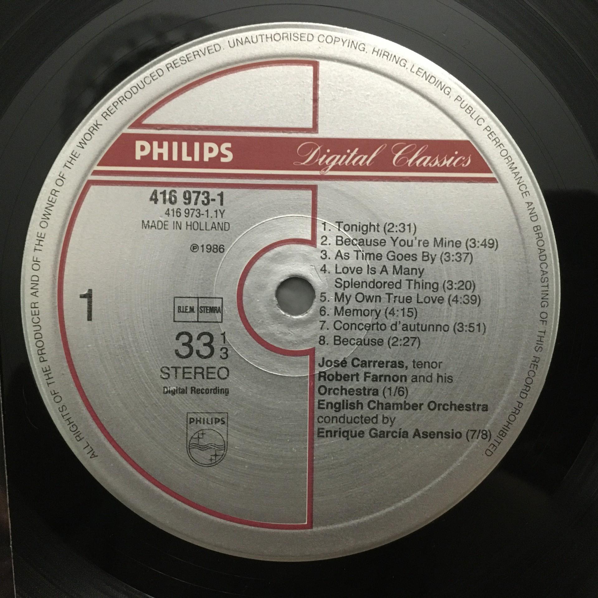 M007 Carreras sings Tronight from West Side Story Philips 416 973-1 Digital Ster