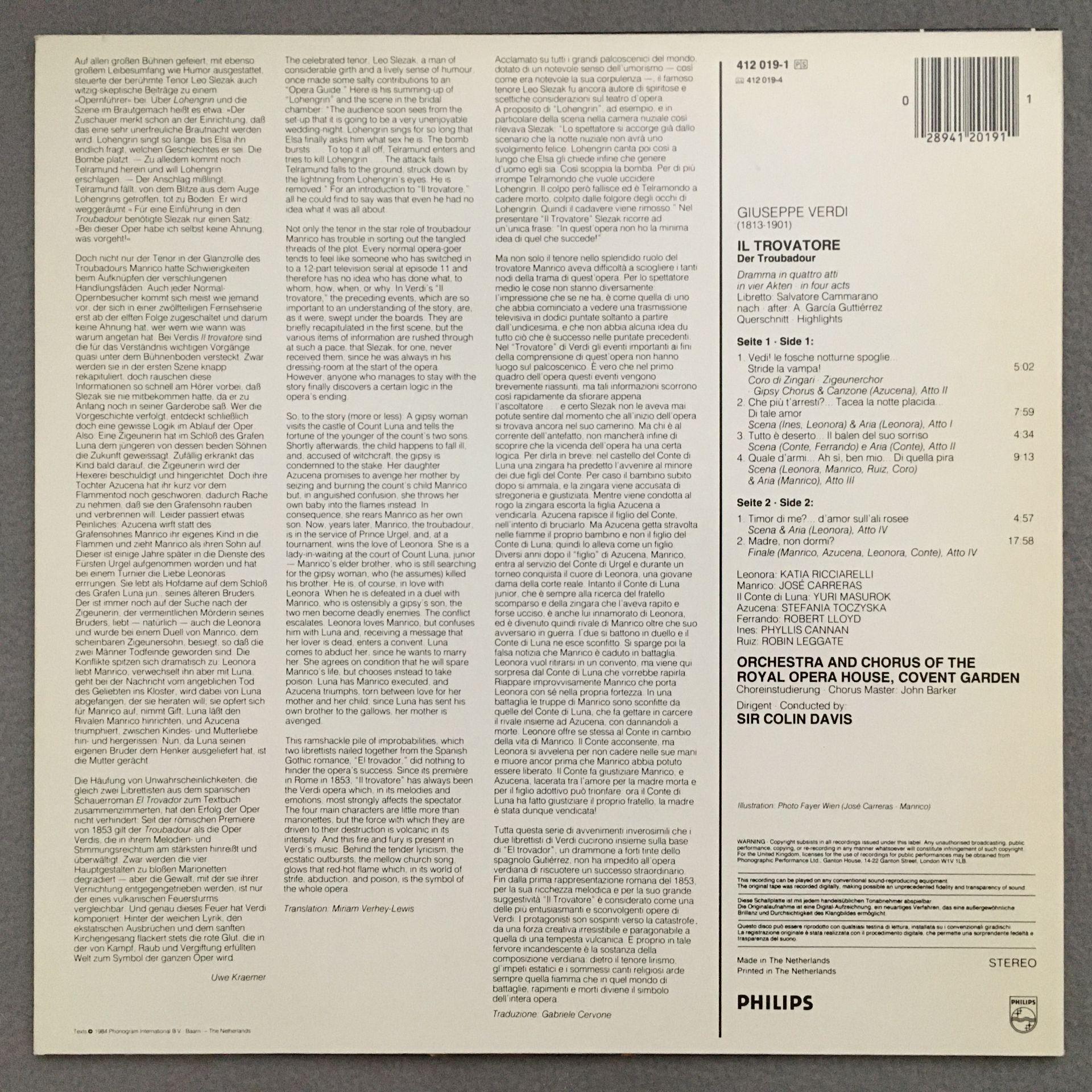 M035 Verdi il Trovatore Ricciarelli Carreras Davis Philips 412 019-1 Digital St