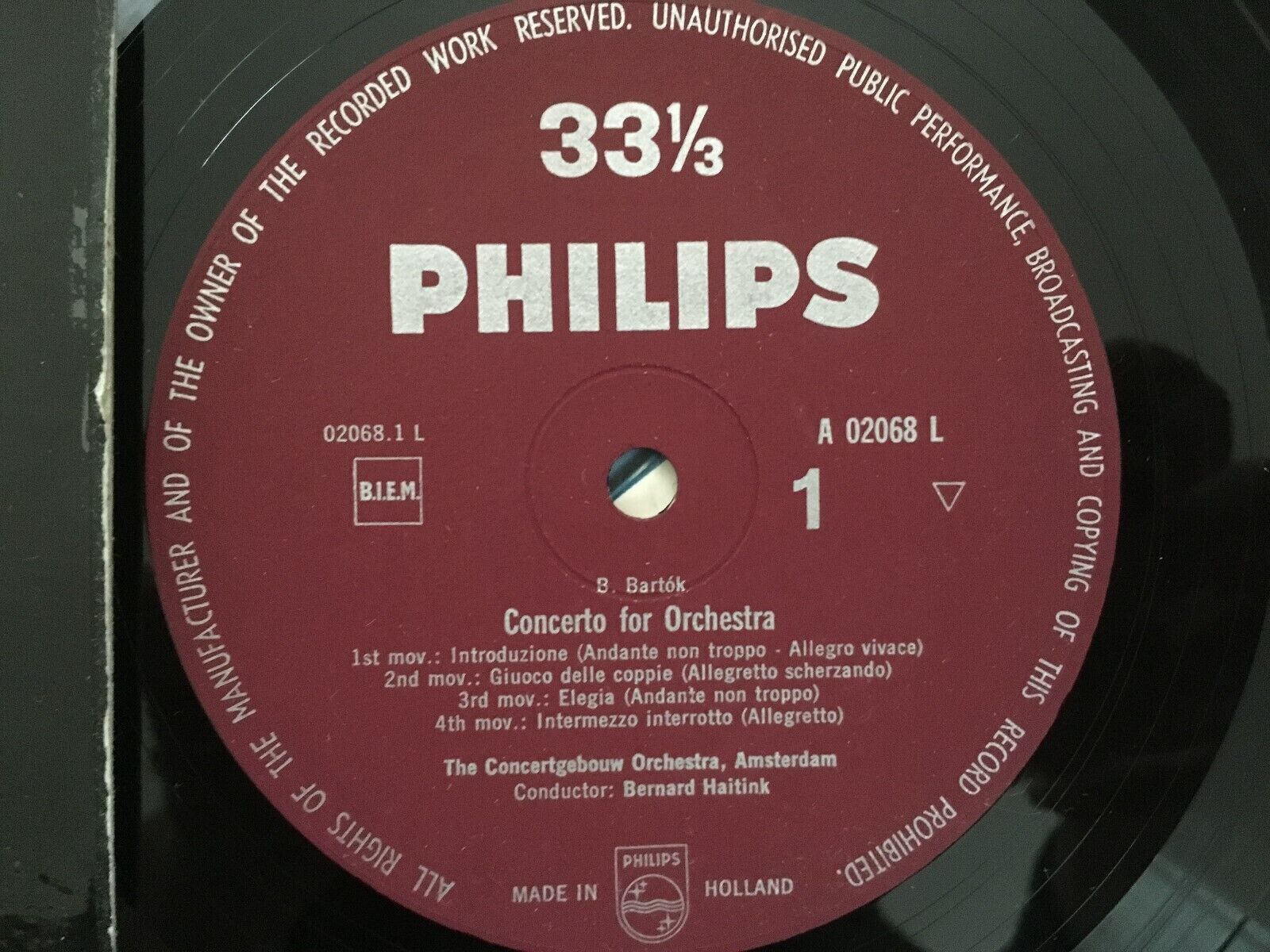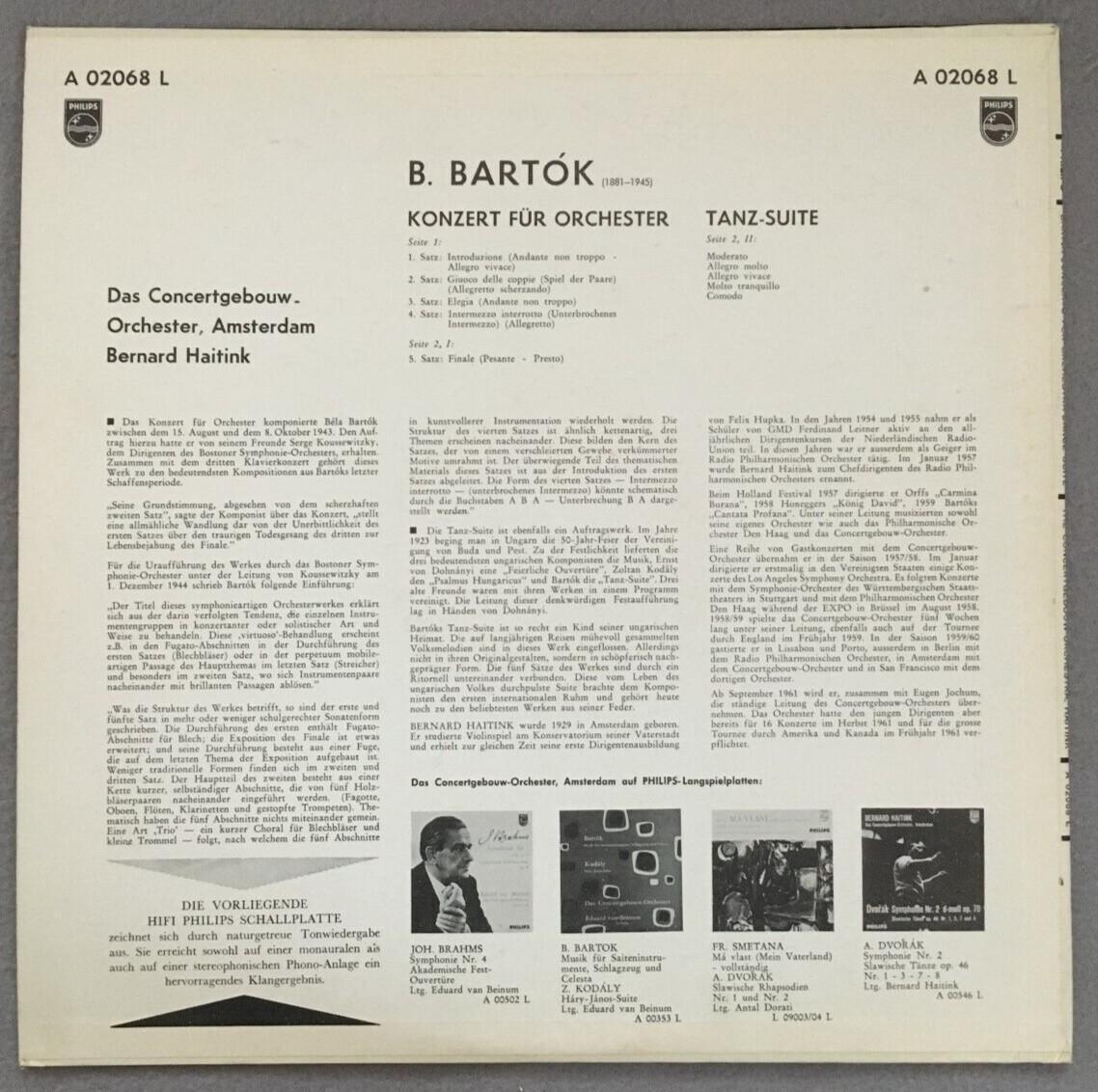 P247 Bartok Concerto for Orchestra Dance Suite Haitink Philips A 02068 L Stereo