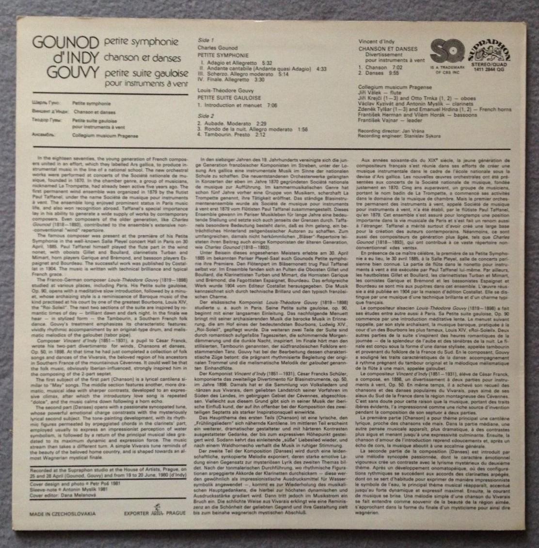 P340 Gounod D´Indy Symphony Chanson & Dances Supraphon 1411 2844 QG Quadro