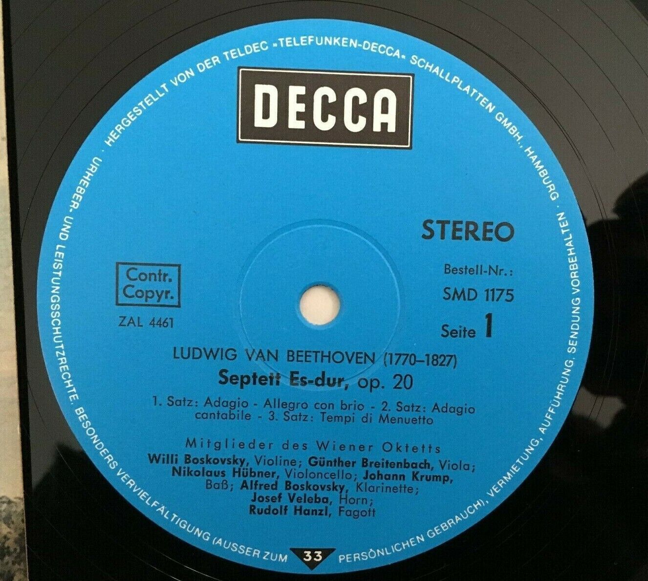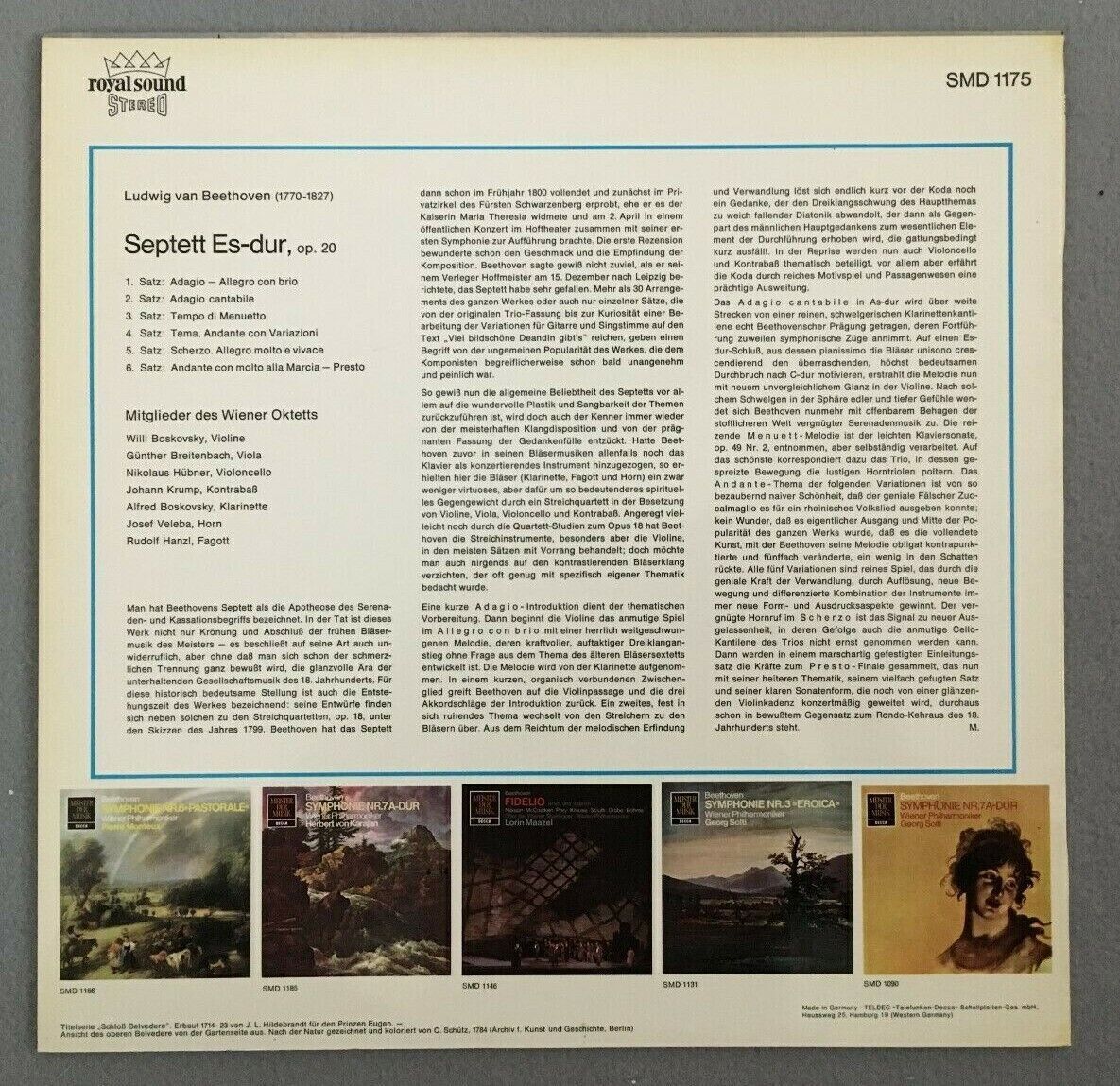 J018 Beethoven Septet Op.20 Wiener Oktett Ensemble DECCA SMD 1175 Stereo