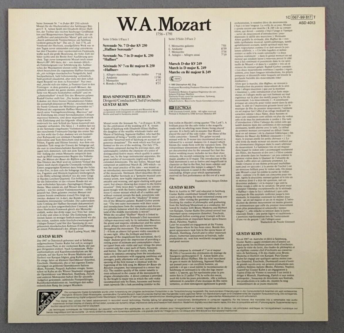 J019 Mozart Haffner Serenade No.7 Kuhn EMI 1C 067-99 817 T Digital Stereo